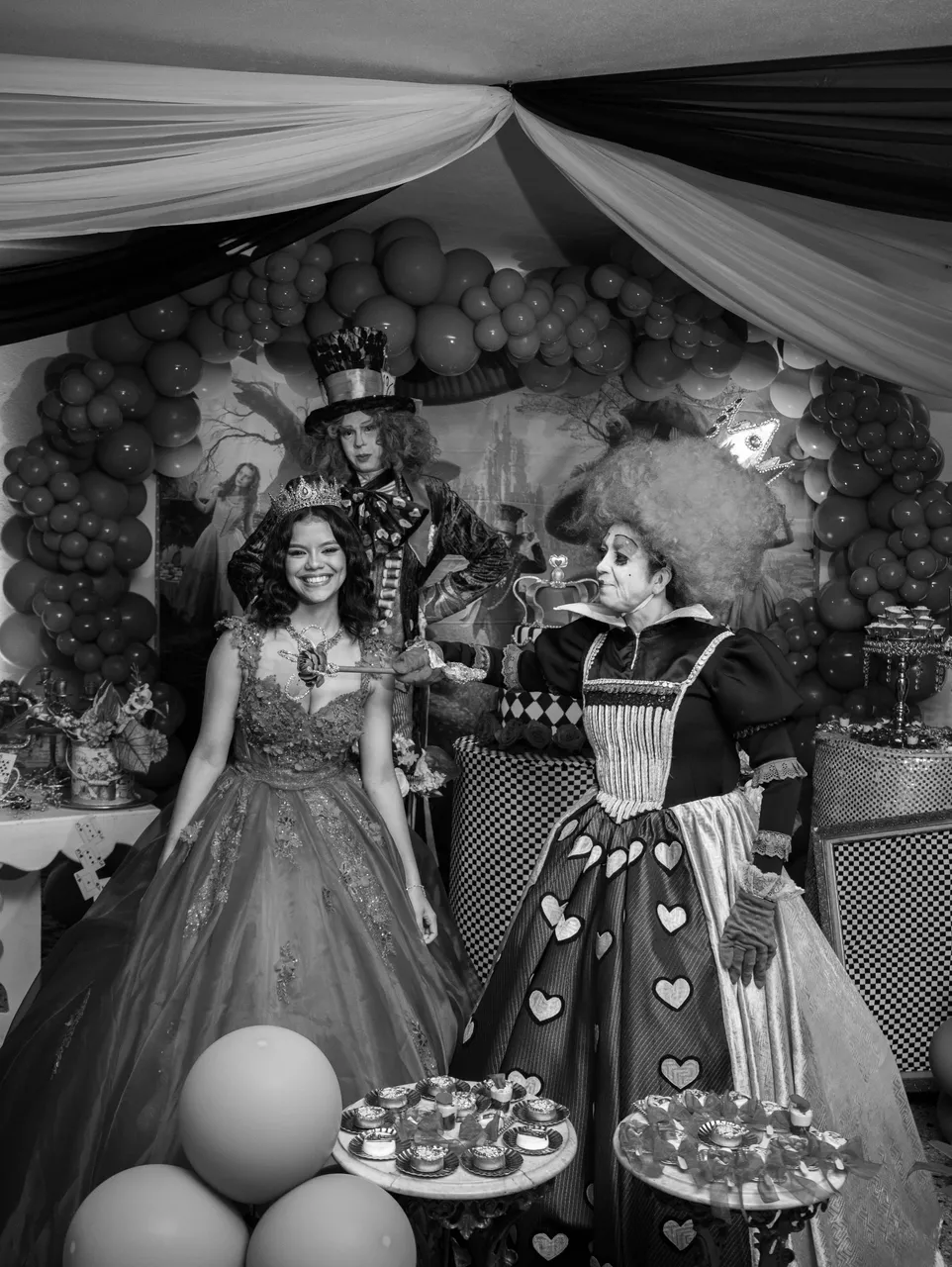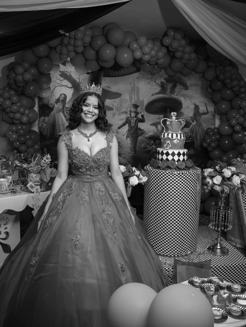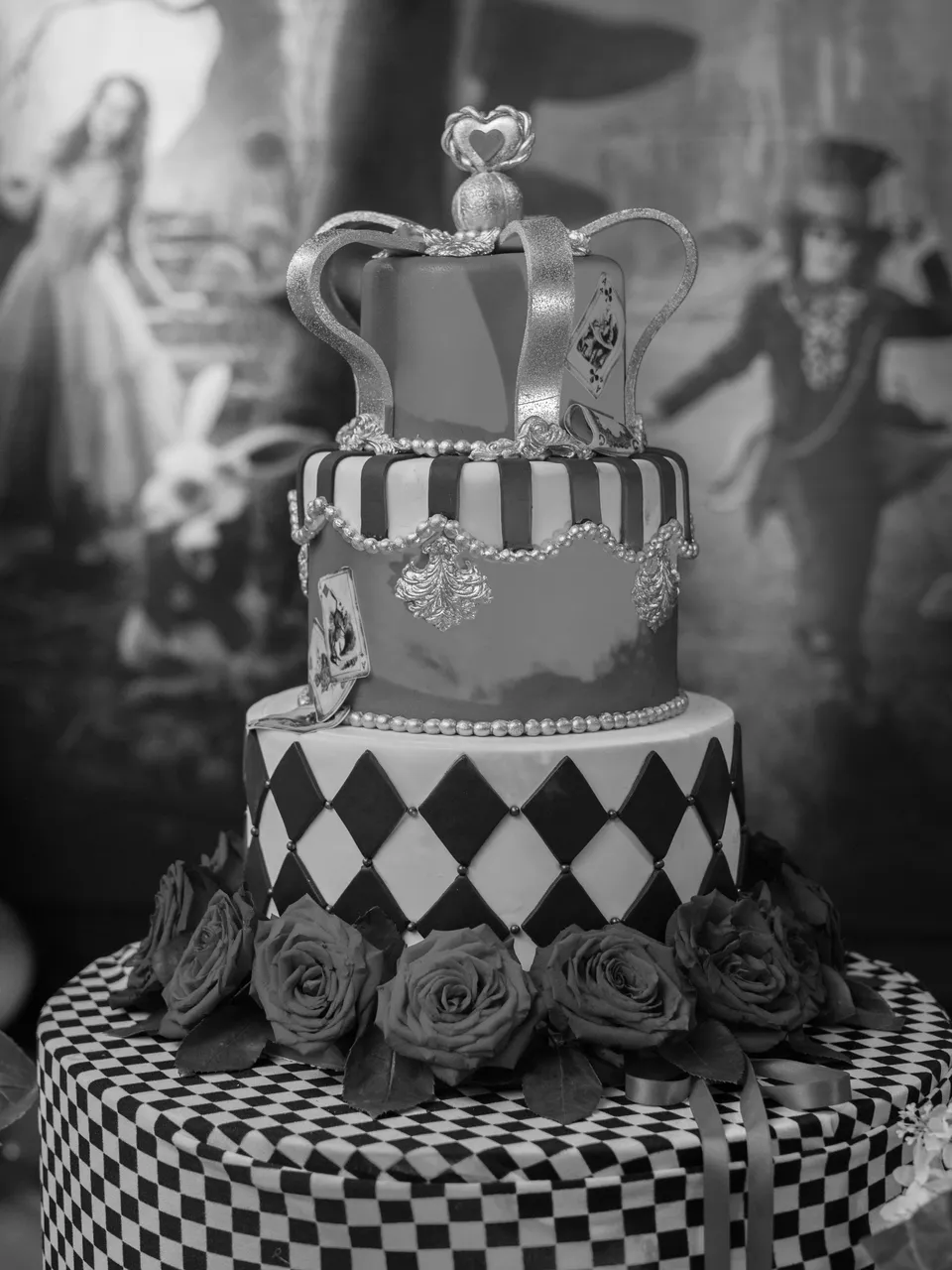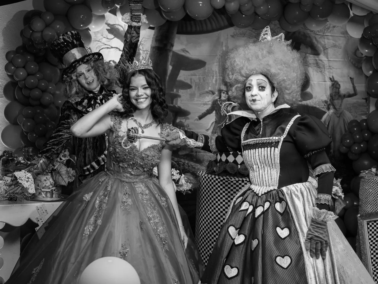 The party had a decoration set in the style of Alice in Wonderland, it was very beautiful.