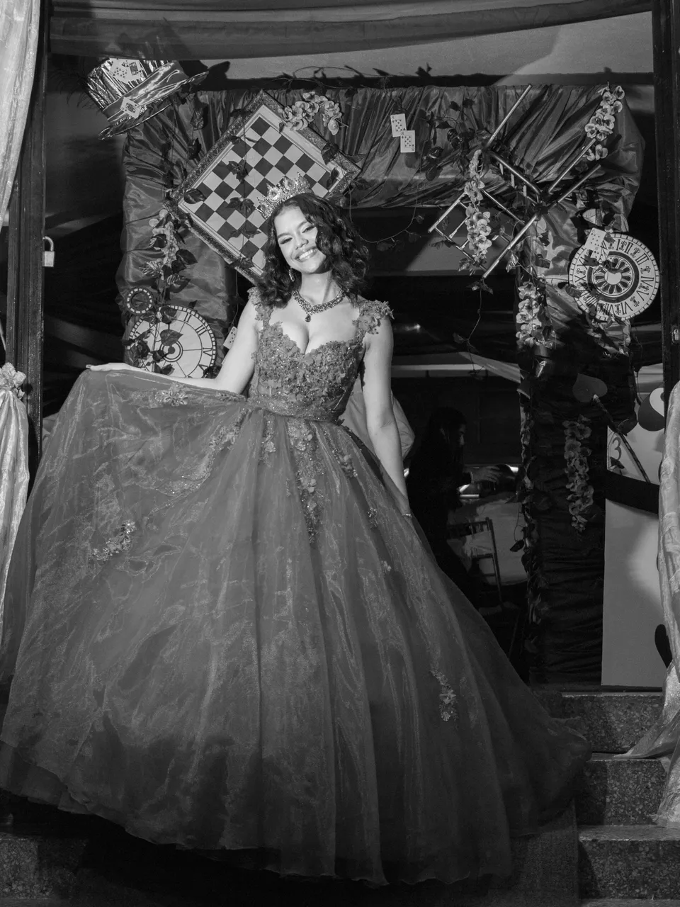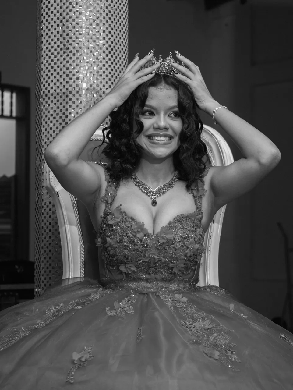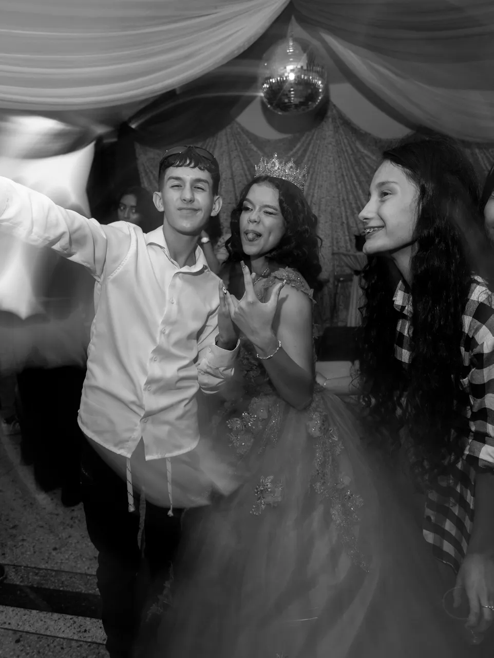 After finishing the portrait photo session, the quinceañera went to change her clothes and the party began. I wanted to take advantage of the occasion to take some photos with a swept style, a very typical style in party photos!