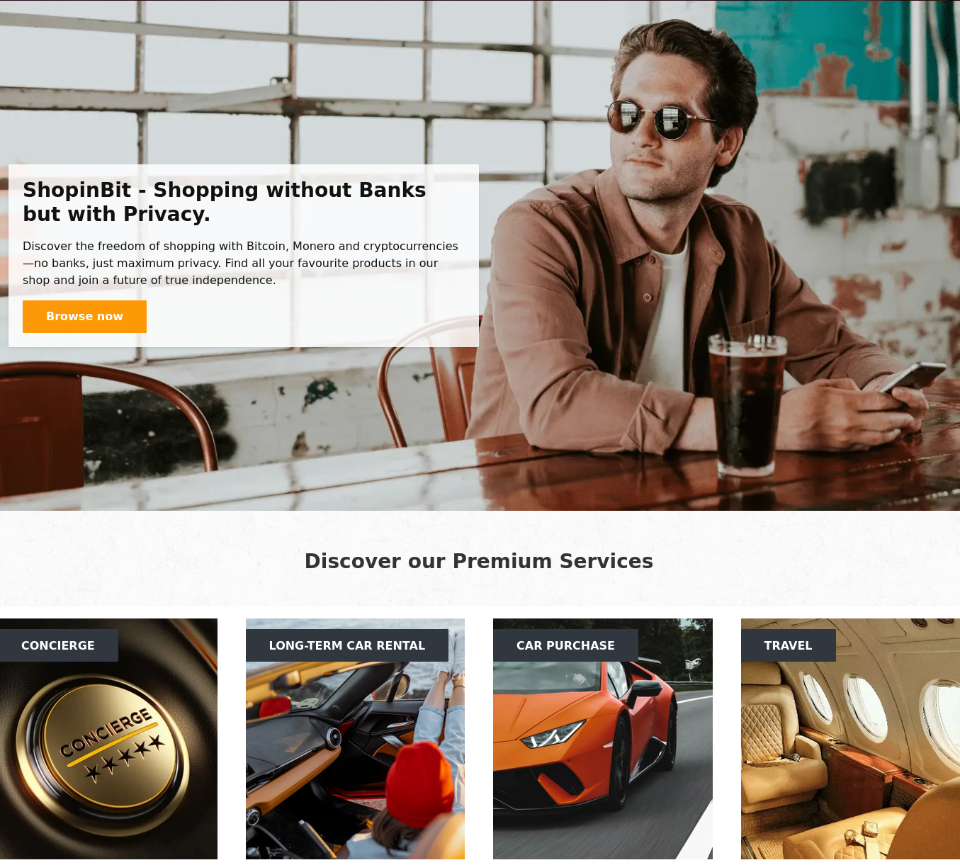 Explore over a million products across categories like Electronics, Fashion, Bitcoin Economy, Personal Car, Home & Garden, Sport, and even Adults Only. - Concierge & Travel Services: