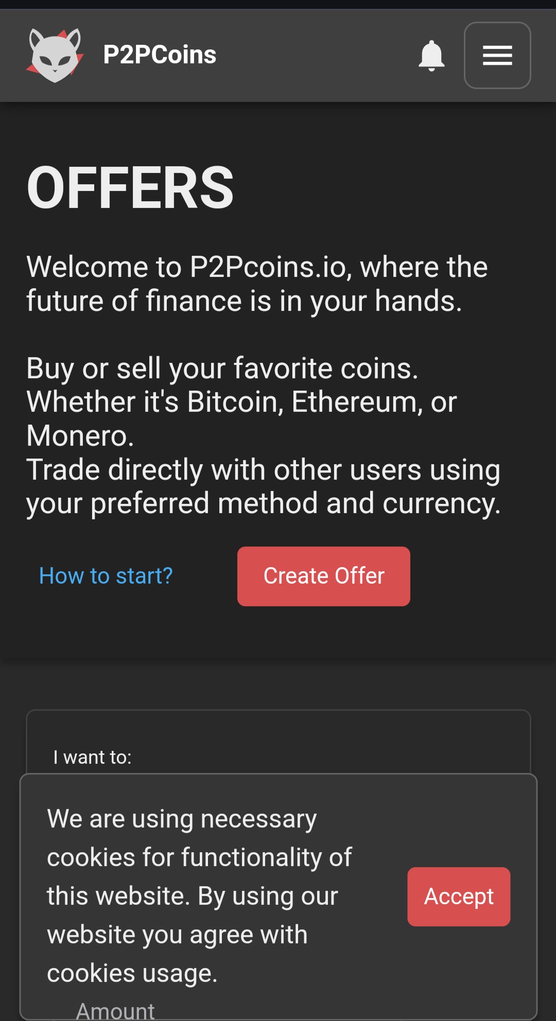 maybe you have some auto-accept cookies by default! Nowadays most of the sites have these warnings! my practice is to avoid cookies at any cost! That's why no alerts were triggered on the browsers am using, either they announce GoogleAnal and reCAPTCHA on their privacy policy https://p2pcoins.io/en/docs/privacy-policy