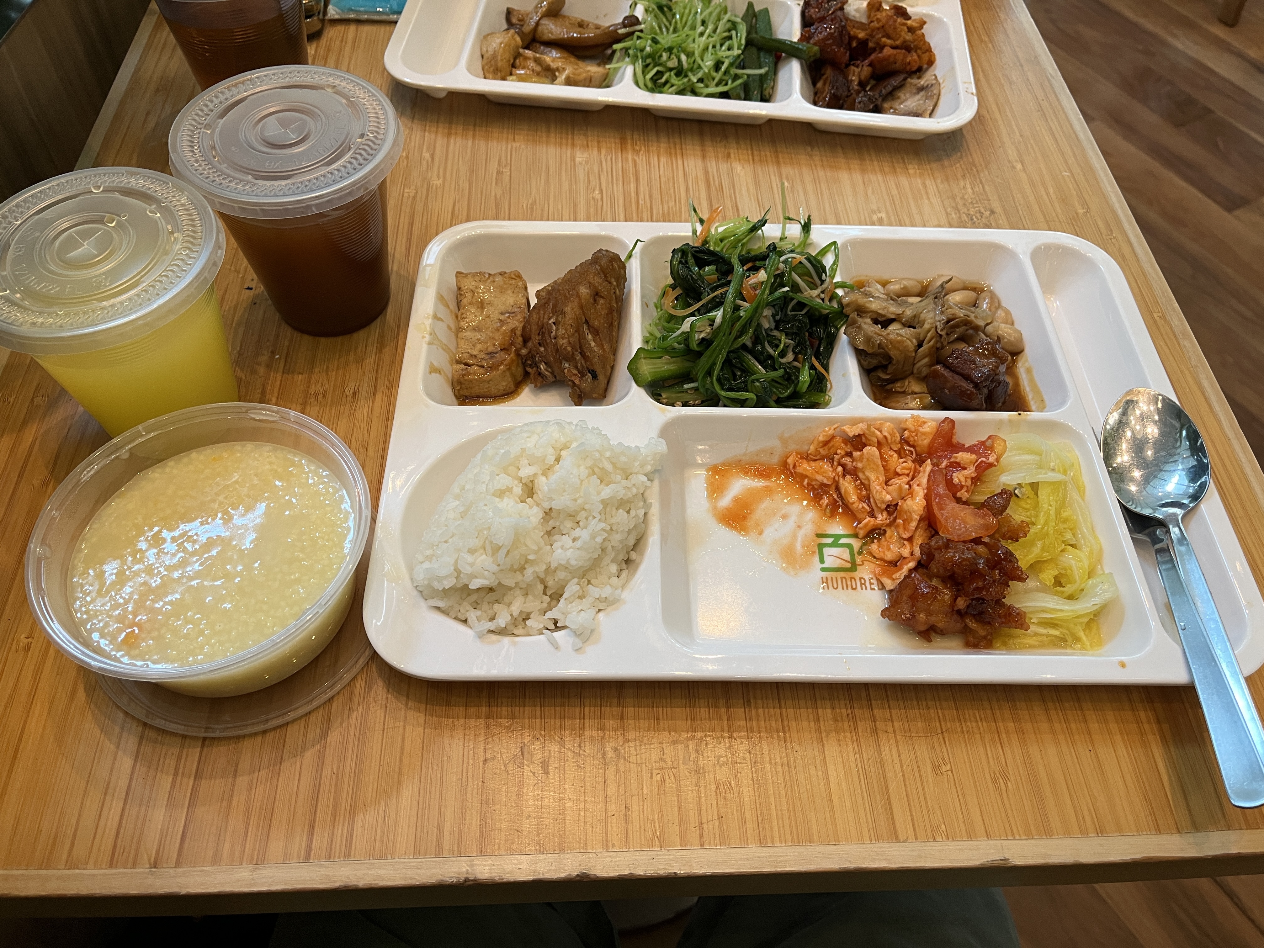 Subsequently, at the counter, while I gulped at the astronomical price of my lunch - three times my typical expense - my psyche was soothed by the promise of unlimited free rice and drinks. (This is why you see two drinks in my photo!) I was empowered to get back what I thought was my money’s worth, so I ended my purchase on a pretty high note!