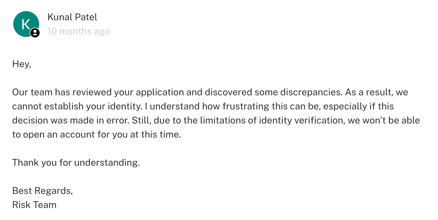 All good points here but the company should provide the potential user reasoning for why they are denying him access.