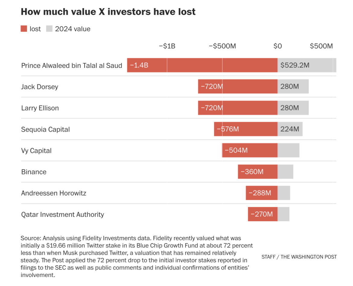 “Elon’s done a tremendous amount of wealth destruction since he’s purchased Twitter,” said Ross Gerber, who said he invested less than $1 million, a stake he now considers worthless.