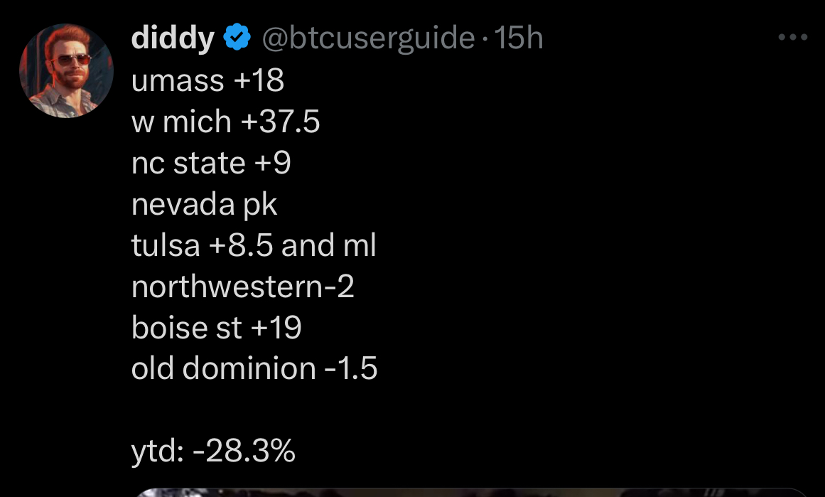 Diddy was an absolute disaster for SN bets. So diddy’s picks will stand on their own. Bet at your own risk!