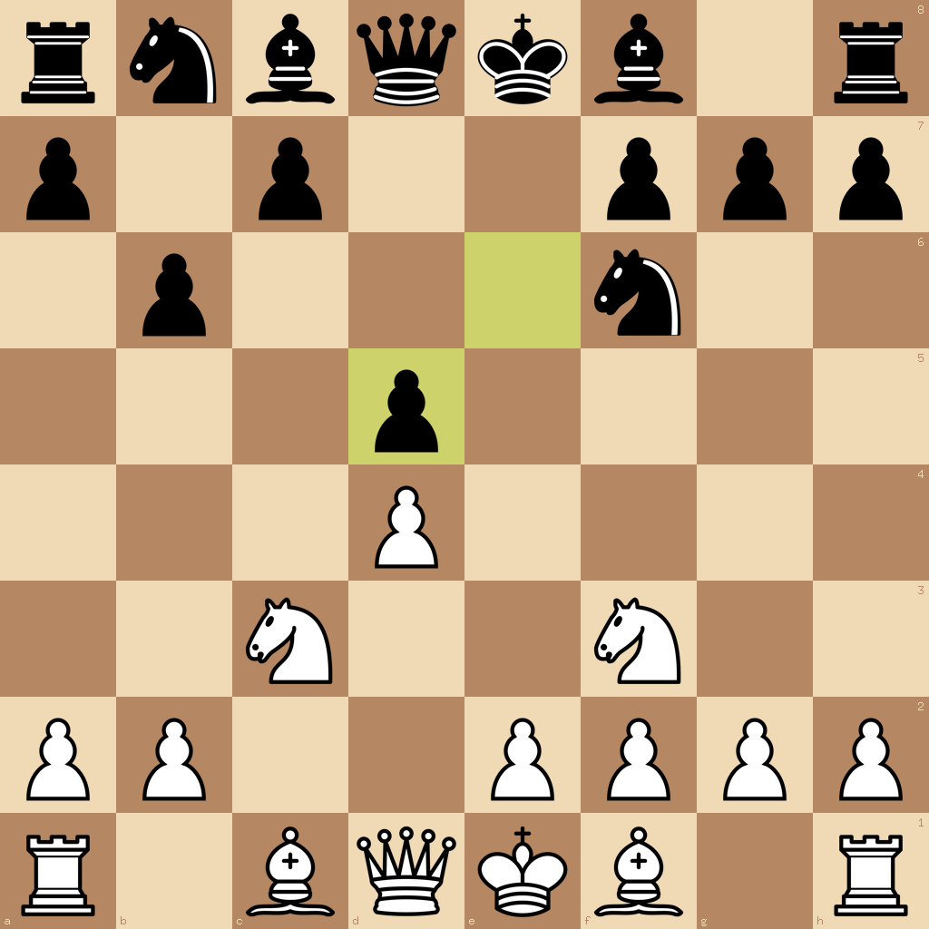 1.d4 d5 2.c4 e6 3.Nc3 b6 4.Nf3 Nf6 5.cxd5 exd5 6.Ne5