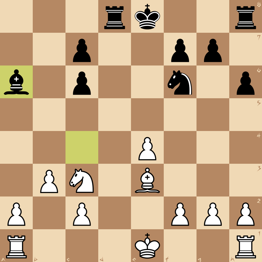 1.e4 e5 2.Nf3 d6 3.d4 Nf6 4.dxe5 dxe5 5.Qxd8+ Kxd8 6.Nxe5 Be6 7.Nc3 Bd6 8.Nd3 Nc6 9.Be3 Kd7 10.Nc5+ Bxc5 11.Bxc5 Rad8 12.Bb5 Ke8 13.Bxc6+ bxc6 14.Bxa7 Bc4 15.Be3 h6 16.b3 Ba6