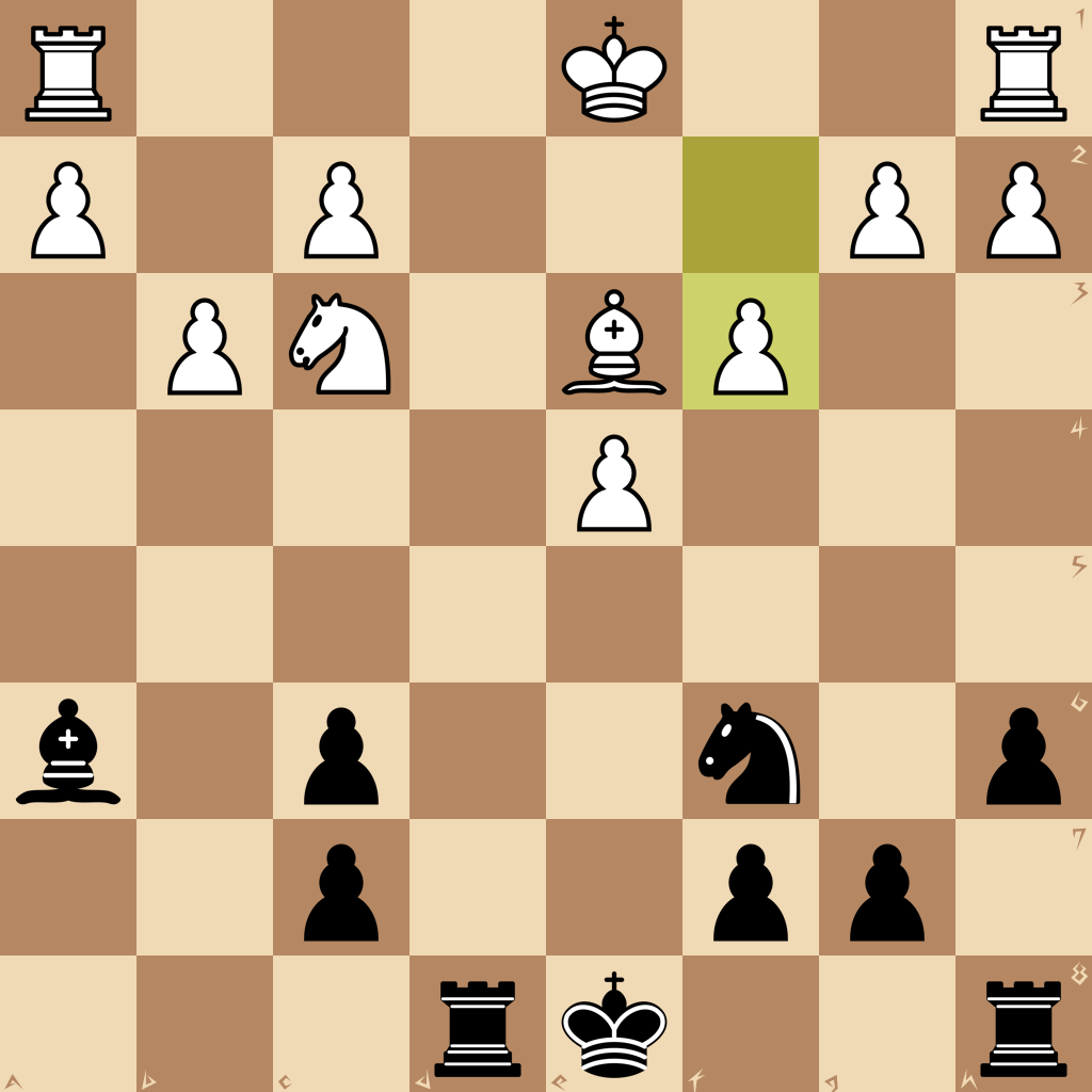 1.e4 e5 2.Nf3 d6 3.d4 Nf6 4.dxe5 dxe5 5.Qxd8+ Kxd8 6.Nxe5 Be6 7.Nc3 Bd6 8.Nd3 Nc6 9.Be3 Kd7 10.Nc5+ Bxc5 11.Bxc5 Rad8 12.Bb5 Ke8 13.Bxc6+ bxc6 14.Bxa7 Bc4 15.Be3 h6 16.b3 Ba6 17.f3