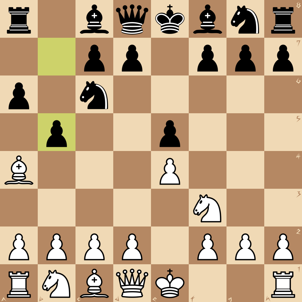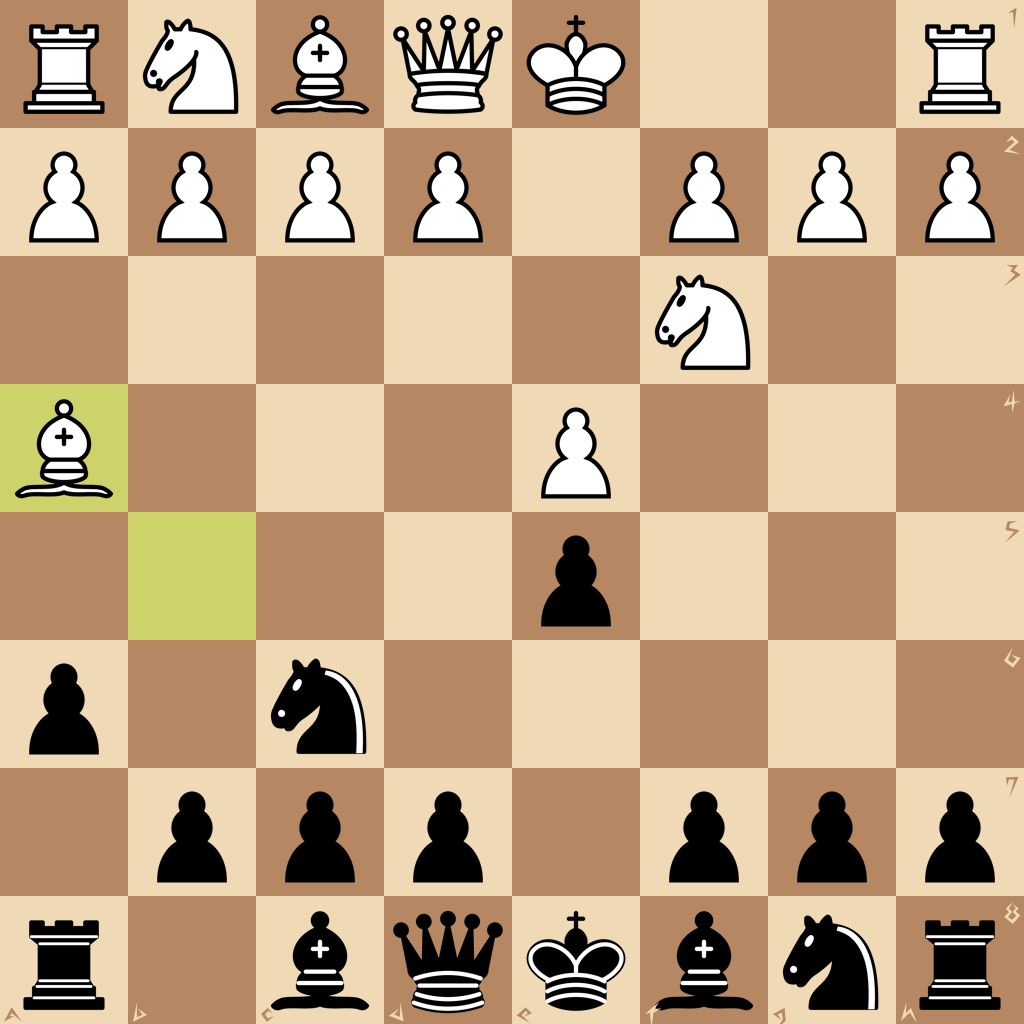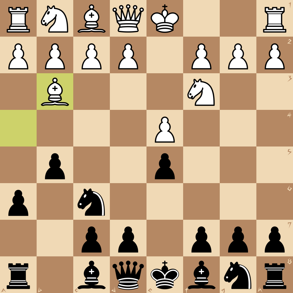 1.e4 e5 2.Nf3 Nc6 3.Bb5 a6 4.Ba4 b5 5.Bb3