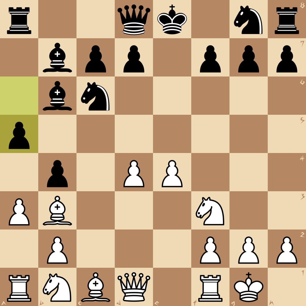 1.e4 e5 2.Nf3 Nc6 3.Bb5 a6 4.Ba4 b5 5.Bb3 Bb7 6.O-O Bc5 7.c3 b4 8.d4 exd4 9.cxd4 Bb6 10.a3 a5