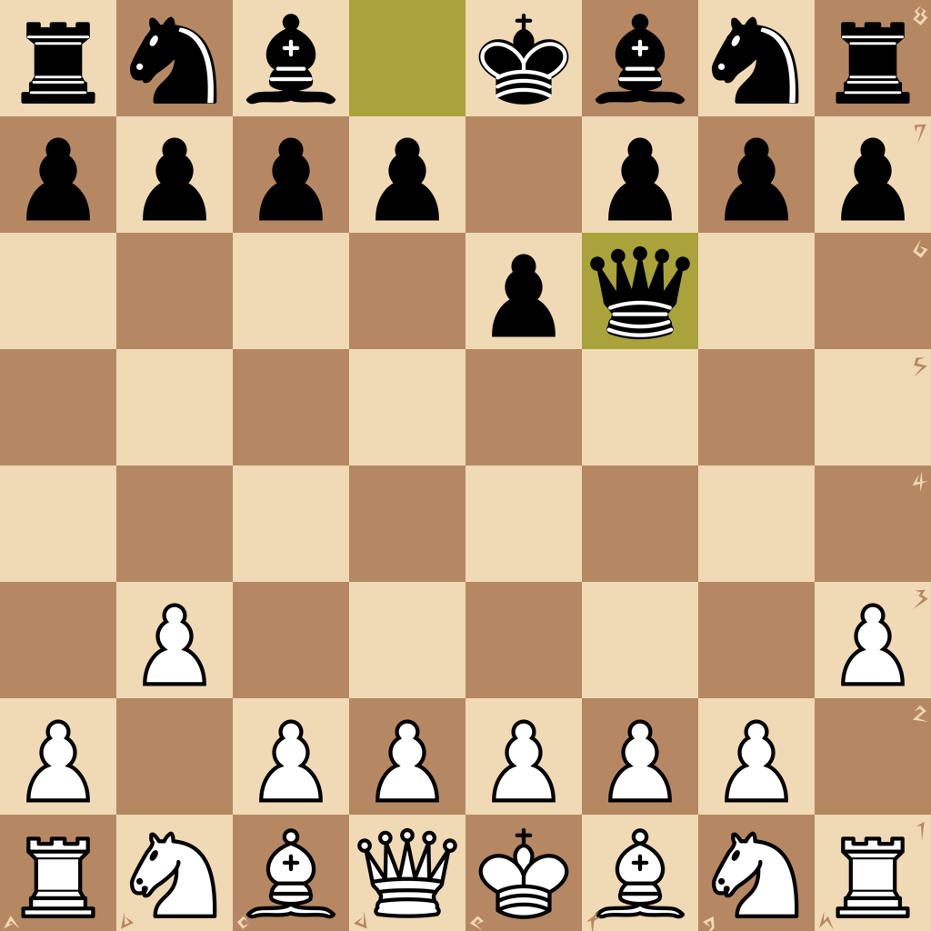 1.h3 e6 2.b3 Qf6 3.c3 Bc5