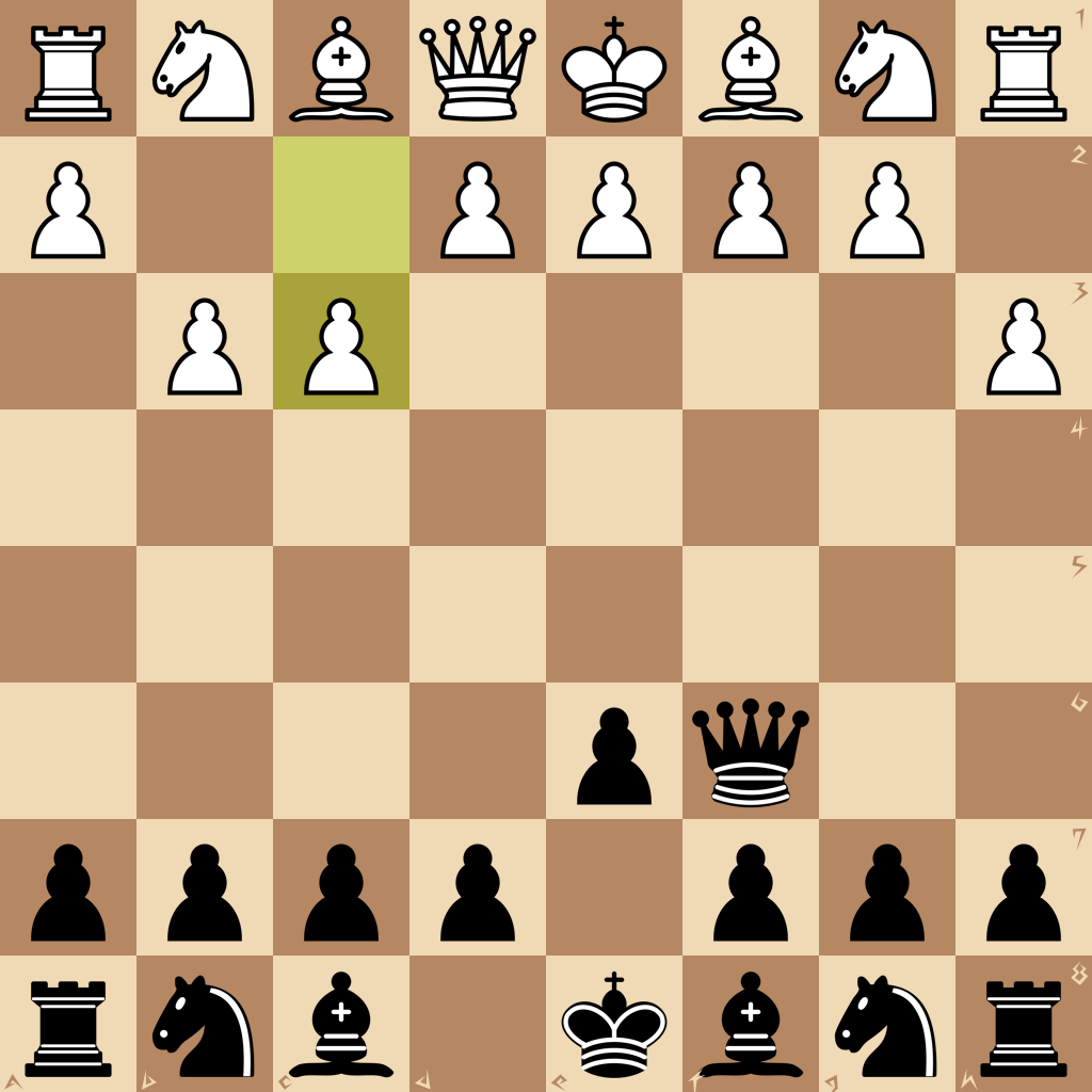 1.h3 e6 2.b3 Qf6 3.c3 Bc5