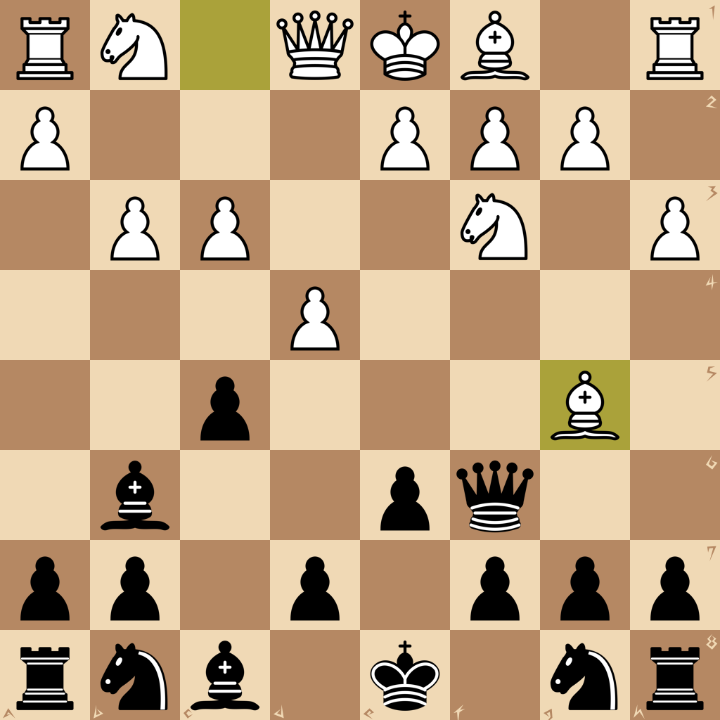 1.h3 e6 2.b3 Qf6 3.c3 Bc5 4.d4 Bb6 5.Nf3 c5 6.Bg5