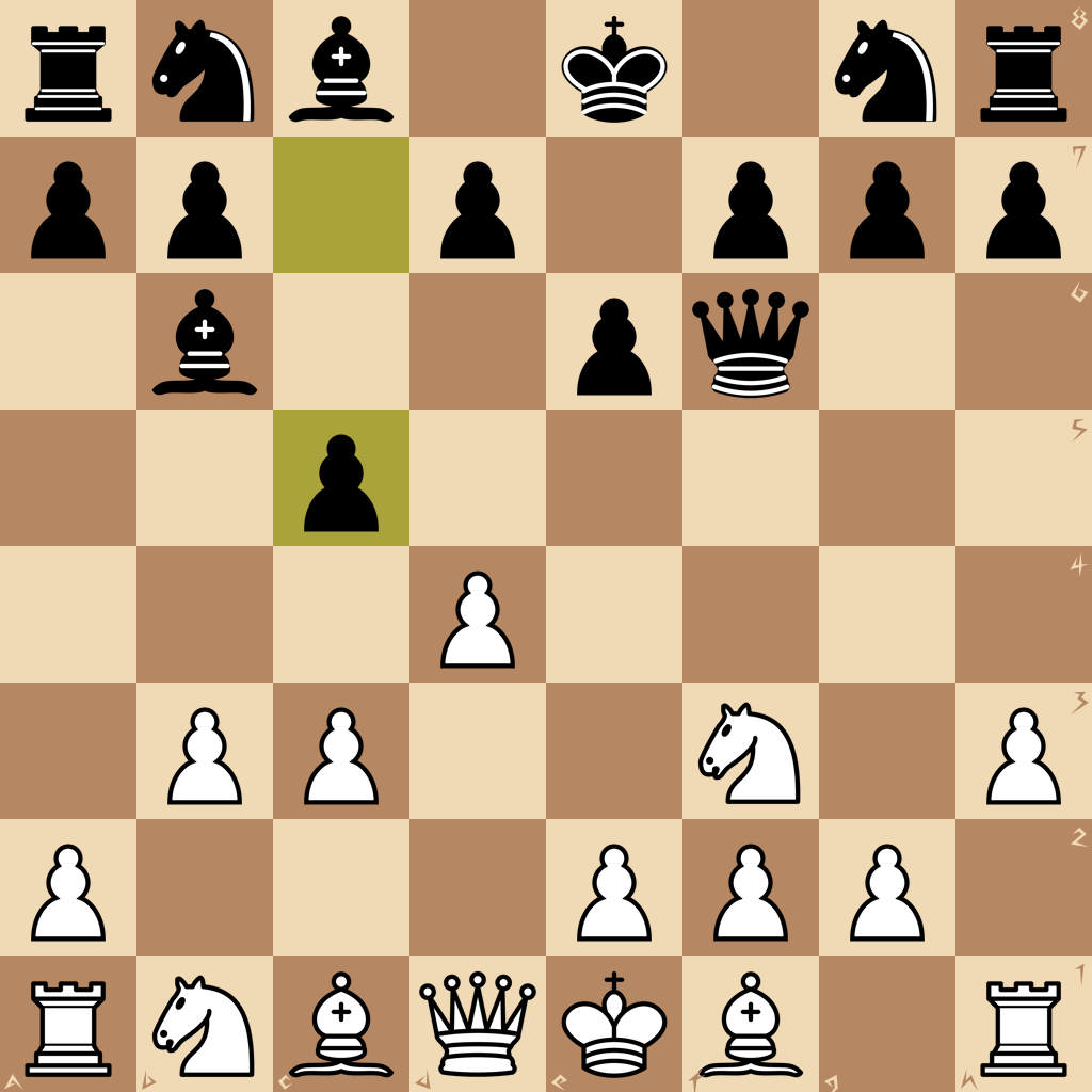 1.h3 e6 2.b3 Qf6 3.c3 Bc5 4.d4 Bb6 5.Nf3 c5 6.Bg5 Qg6