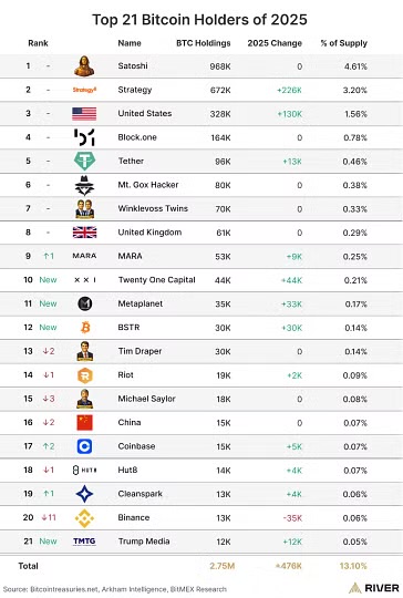 It’s been quite the year for the world’s wealthiest Bitcoiners, whose fortunes have swelled from a 120% BTC price appreciation in 2024. River’s inaugural Top 21 List showcases the world’s richest bitcoin holders.