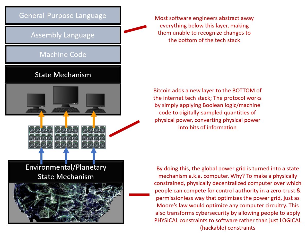 Bitcoin bridges the divide between abstract/imaginary power and real/physical power, thus making a system that is pure information (abstract) and yet physically secure, only breakable by directing a huge amount of real world, physical power and resources.