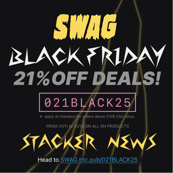 21% OFF BLACK FRIDAY deal on all Stacker.News merch starting in two weeks.