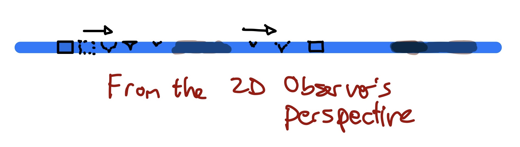From an entity confined to the 2D plane the will see this weird line moving through the water towards a mud spot and then slowly get smaller (as the pen pulls out and you see the tip finally) before it disappears and then reappears slowly on the other side of the mud spot. That's the 2D/3D analogy to what we could be seeing here in our 3D/4(?)D case.