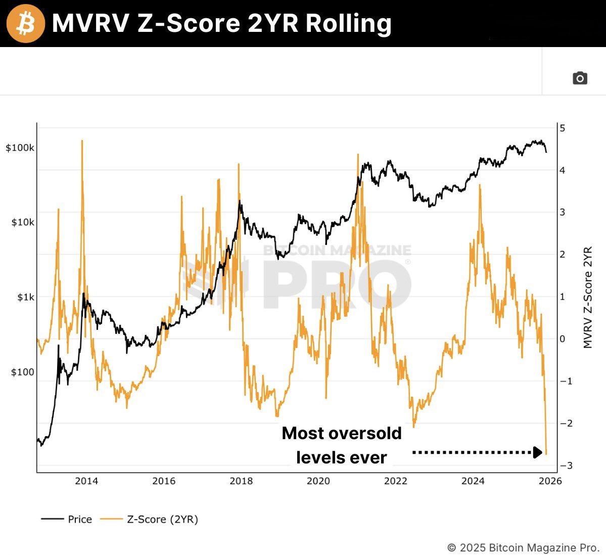 The MVRV Z-Score 2yr has just reached the highest oversold level IN Bitcoin HISTORY. Every time this has happened, what followed has been EXPLOSIVE.
