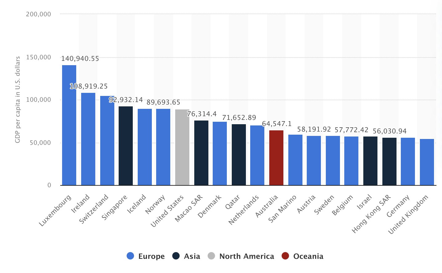 At the beginning of the 20th century, Switzerland had a lower GDP per capita than Spain. It was a rural, poor country with no natural resources. Today, it has a GDP per capita of USD 104,000, among the three highest in the world.