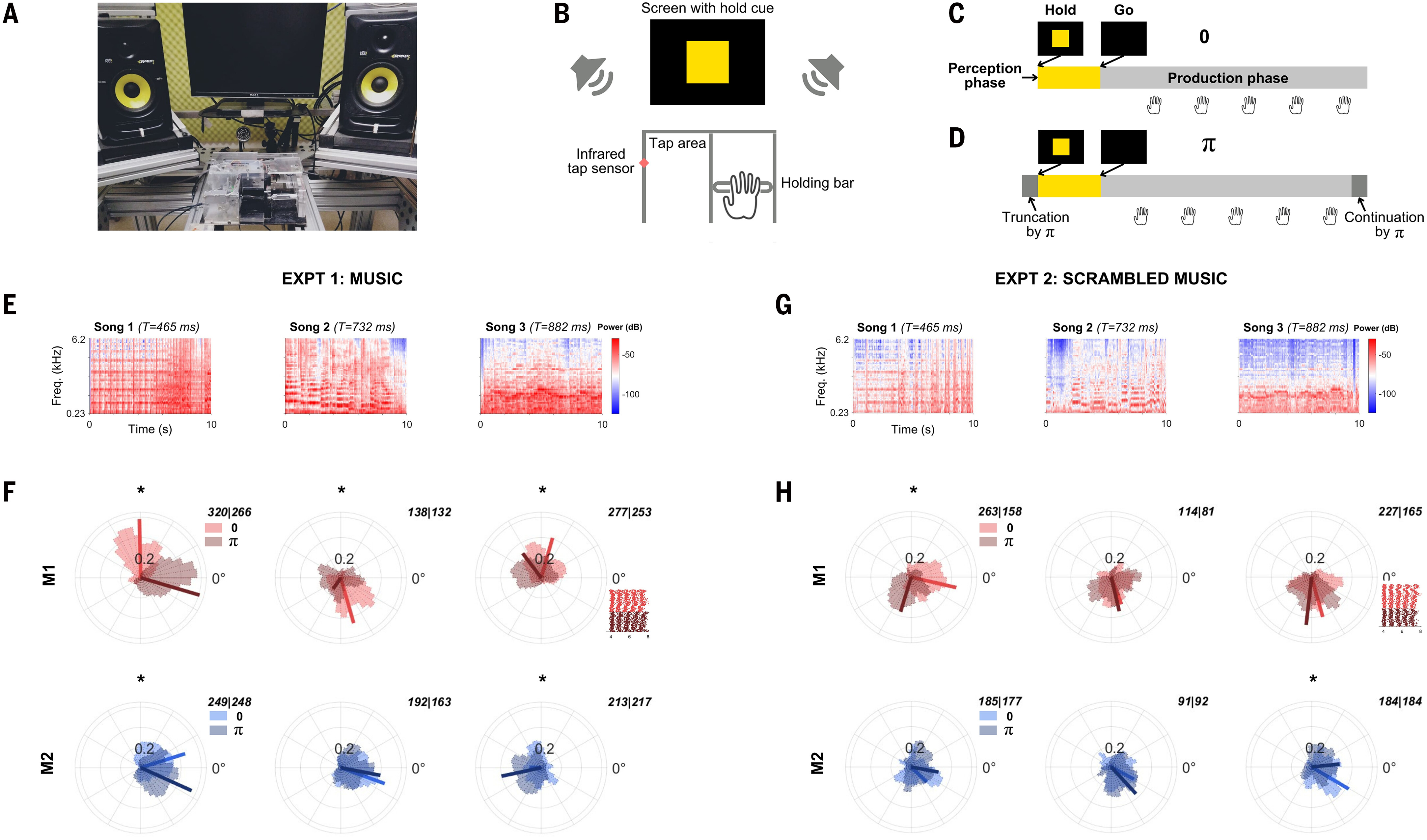 Synchronizing movements to music is a hallmark of human culture, but its evolutionary and neurobiological origins remain unknown. This ability requires (i) extracting a steady rhythmic pulse, or beat, out of continuous sounds; (ii) projecting this pattern forward in time; and (iii) timing motor commands to anticipate future beats. Here, we demonstrate that macaques can synchronize to a subjective beat in real music and even spontaneously do so over alternative strategies. This contradicts the influential “vocal-learning hypothesis” that musical beat synchronization is privileged to species with complex learned vocalizations. We propose an alternative view of musical beat perception and synchronization as a continuum onto which different species can be mapped based on their capacity to coordinate the general abilities listed above through association with reward.