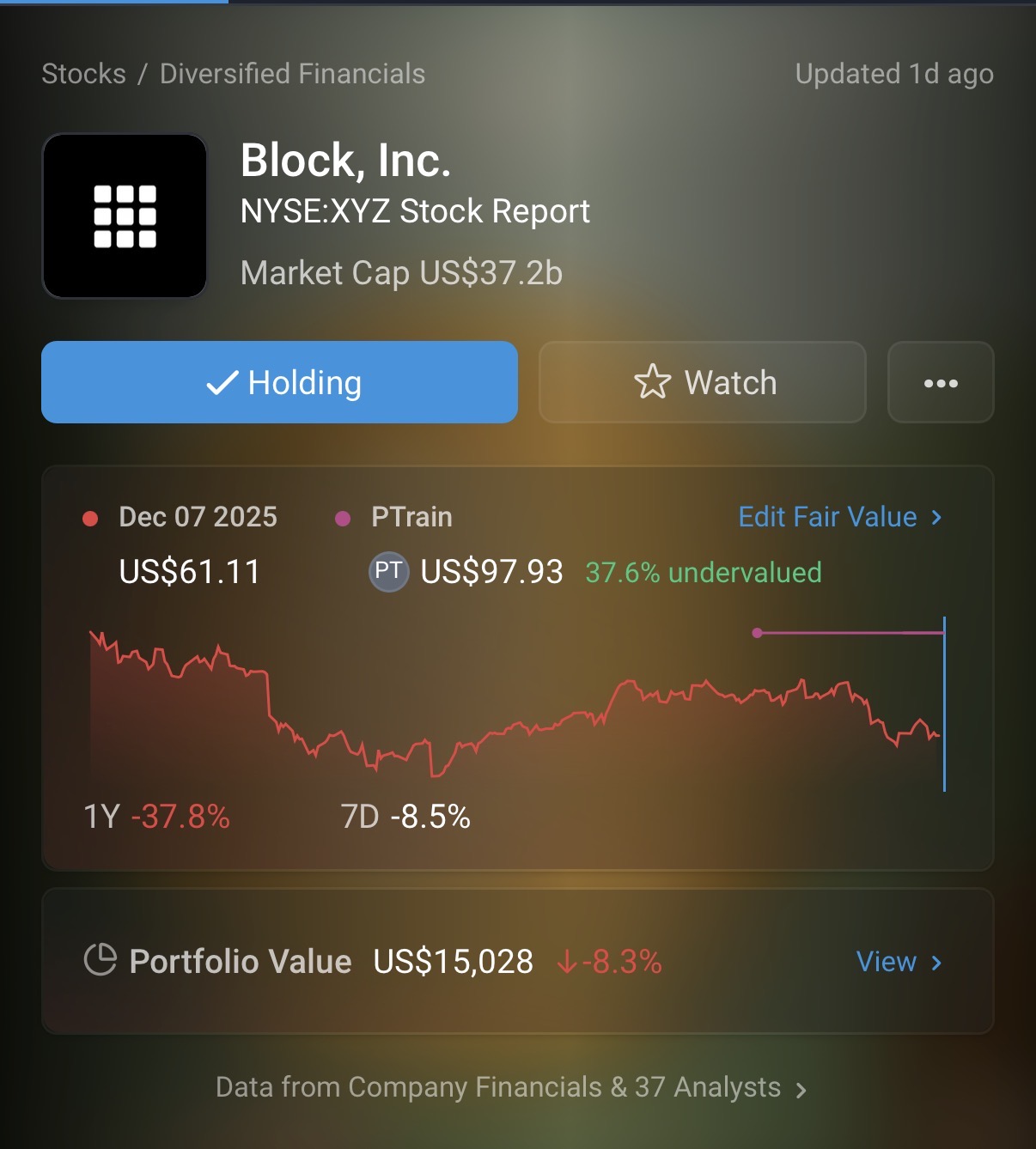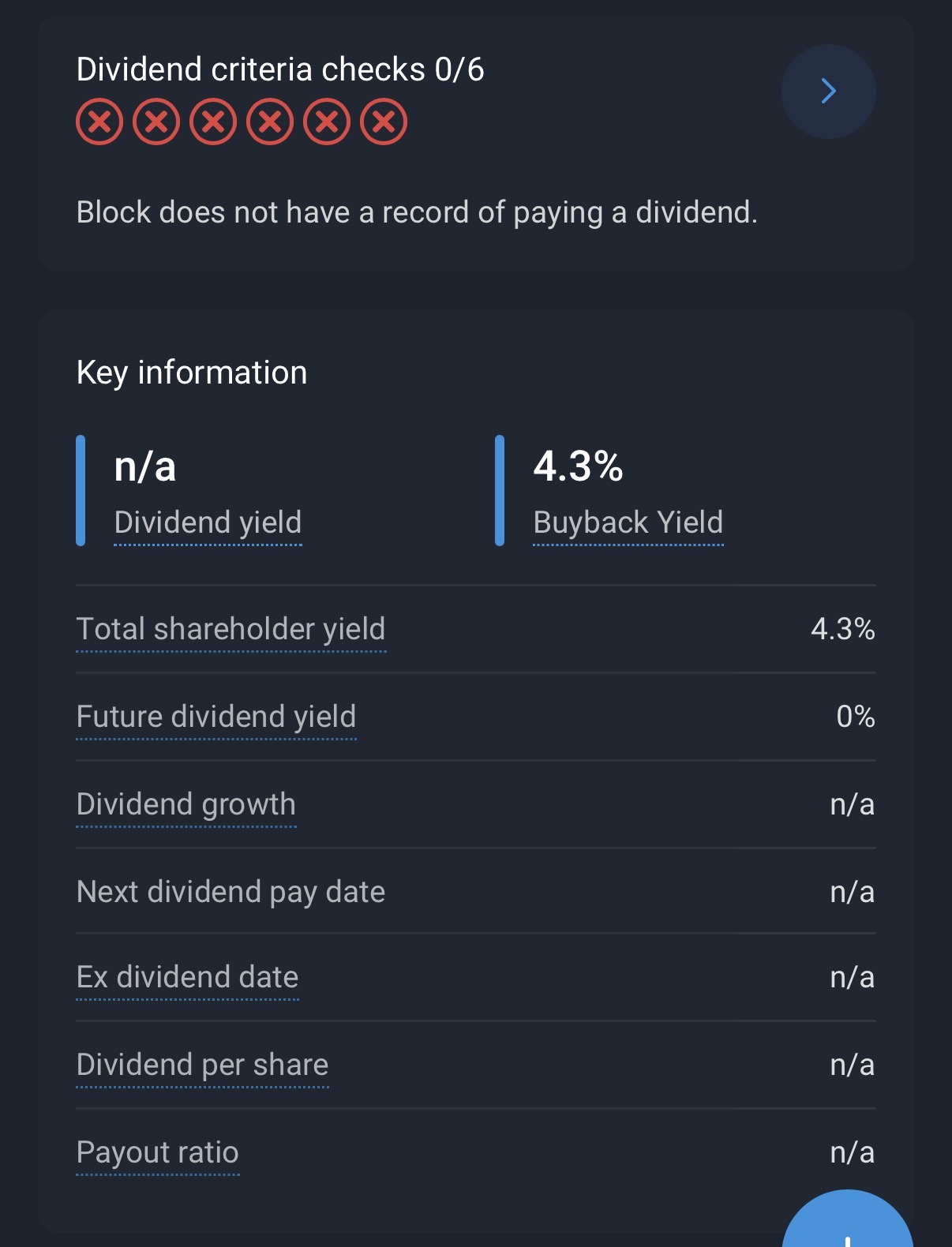 At 68k sats for one share (@ $89,285) that pays no dividend early to medium term investors may not see much value in owning this stock. You can find better growth opportunities (i.e bitcoin) in the market then waiting for Block to expand its payments and streaming businesses.PE: