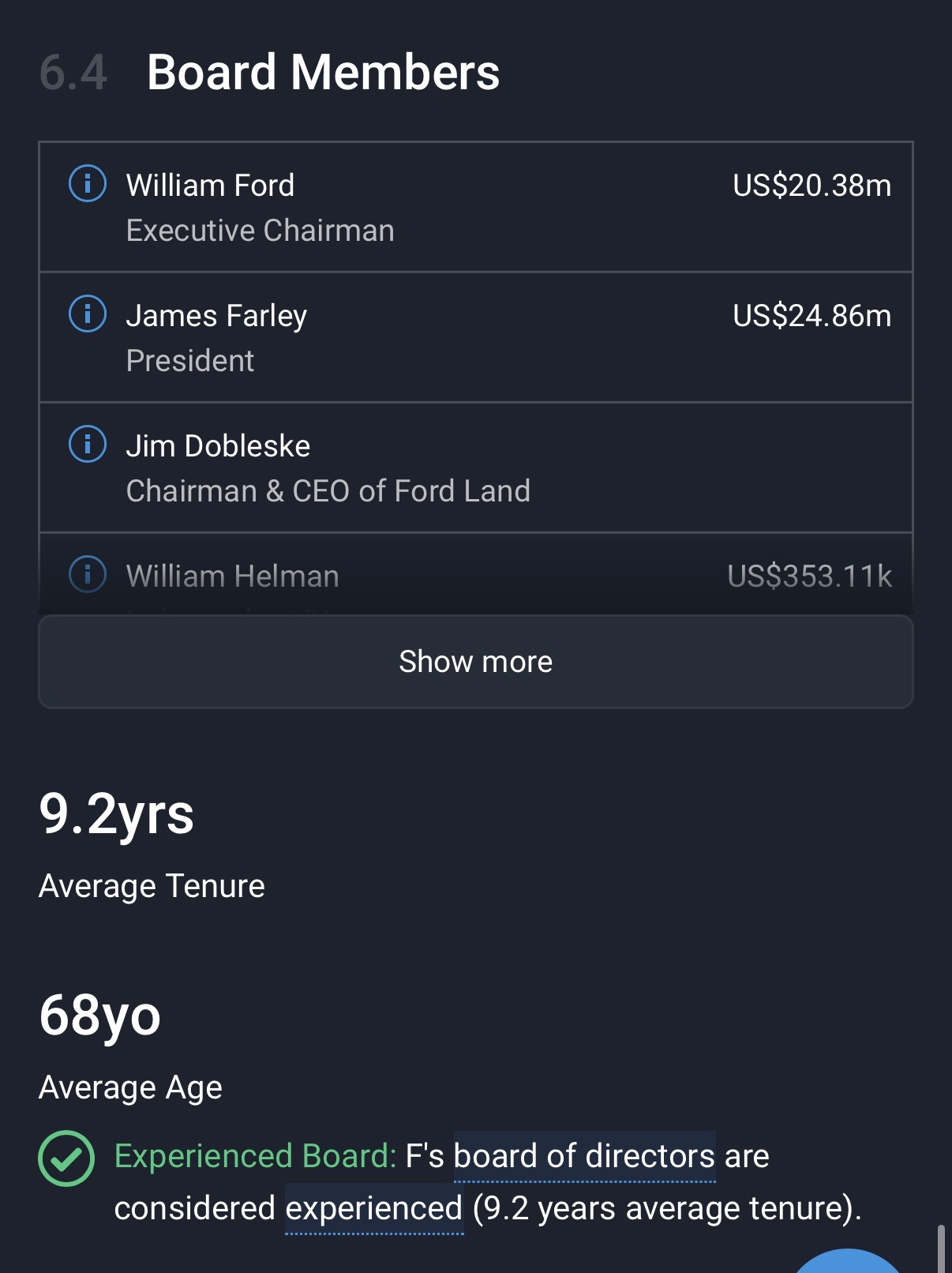 Look at how old the board is. This company is far past its prime. The debt alone is downright criminal! And yet, they continue to pay investors dividends. This is why logical people detest the stock market. It’s like that friend who borrowed $100 from you and pays you back in $10 increments per month, but still takes his girlfriend out to dinner and a movie. The debt holders are you, and the shareholders are the girlfriend. In a true capitalist system, Ford would declare bankruptcy and sell off its business to pay off its debtors. People criticize Saylor for running a Ponzi scheme but have no qualms about driving a Ford. The irony! This business is cooked!