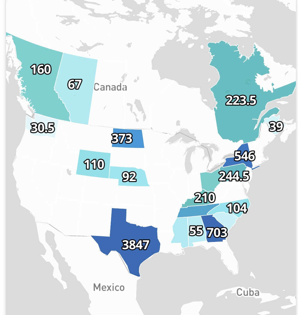 Operational Bitcoin Mining Power Capacity Distribution in North America