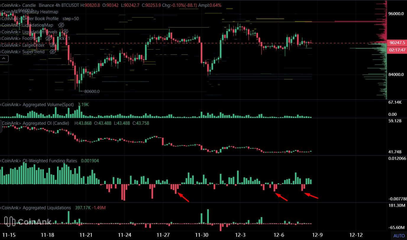 With negative funding, this is a classic scenario of bidirectional liquidity absorption, but it reveals low leverage and therefore reduced volatility.