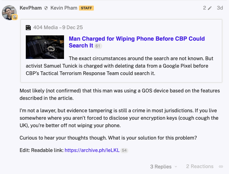 A man has been charged with destruction of evidence after allegedly erasing the contents of his phone before a Customs and Border Protection (CBP) agent could search it. It's unclear why CBP wanted to search Atlanta-based activist Samuel Tunick's Google Pixel.