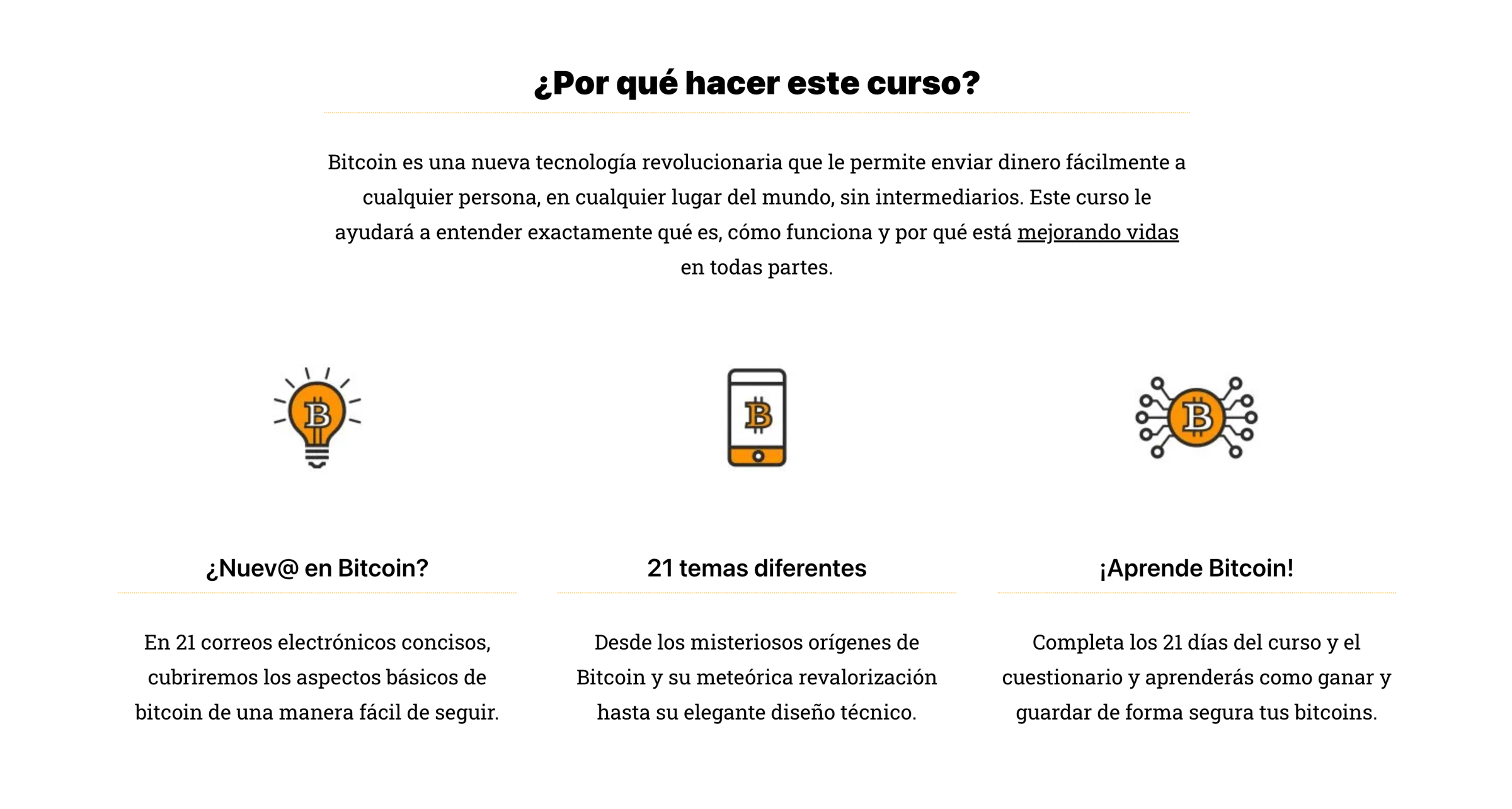 The free course on the basics of Bitcoin, delivered daily by email directly to your mailbox (in Spanish).The free course on the basics of Bitcoin, delivered daily by email directly to your mailbox (in Spanish).
