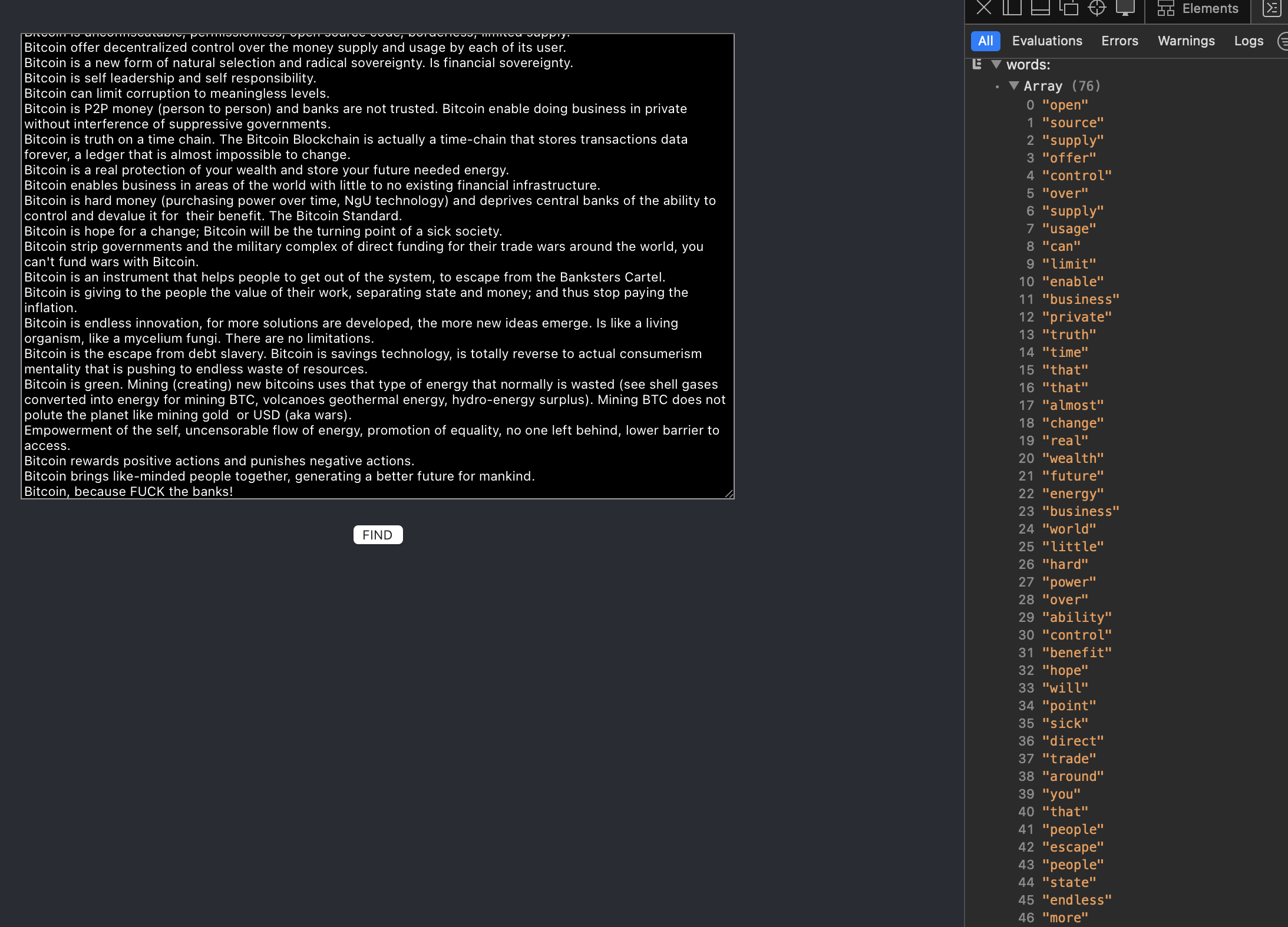 Hey Darth, in the middle of the night my child woke up and seems he may have pneumonia. Moments like this make me realize I'm sick and tired of my idiot fiat boss. While he sits with me, recovering from his cough in my lap, I tried to do a script, very naively optimistic to take your 1 BTC from your guides to compare them with the BIP39 word list. I have vouched that if I can take that 1 BTC I will quit my job at the fiat mine and try to get a bitcoin-only paid job (tried last time for a few months, got a few interviews, but failed in the end and ran out of gas. Now I have much more savings and I can try again).