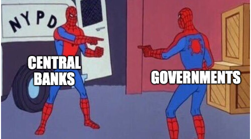 i wonder if the easiest path forward is for central banks to blame governments for spending too much and for governments to blame consumers for spending too much.