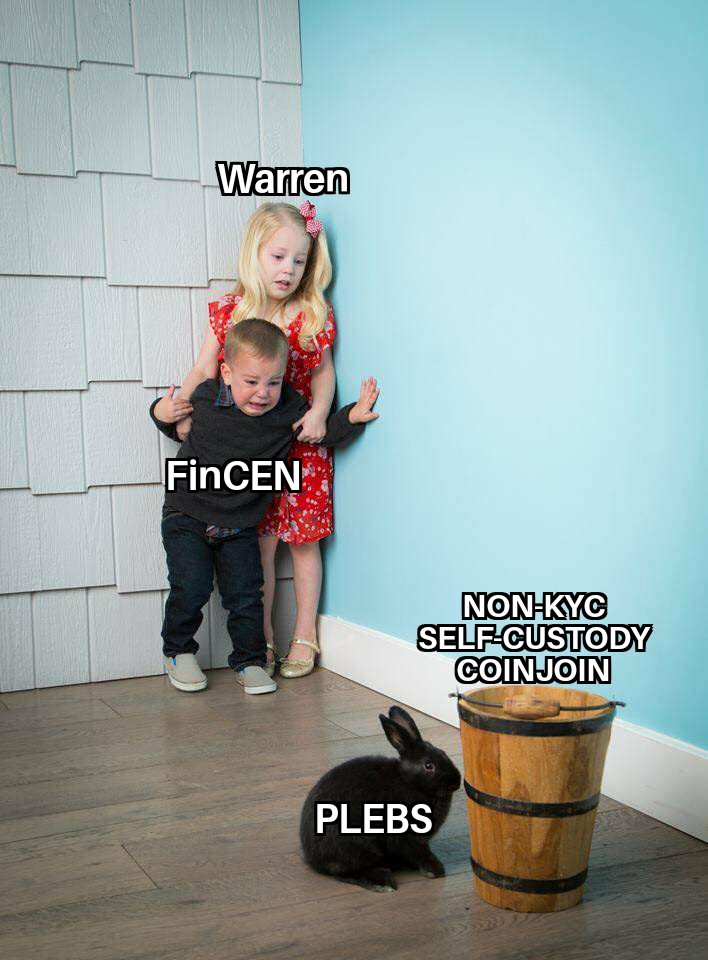 I was just on ex-birdapp and there was a legit discussion about how coinjoin/collaborative transactions make you vulnerable. It's hilarious and sad, but these people will sell you out at the nearest opportunity. As soon as the government says hey if you know someone who is doing coinjoins, report them and you will get some extra UBI in your CBDC app, they will do it. Because they don't care about the purpose of bitcoin. They only care about the investment thesis.