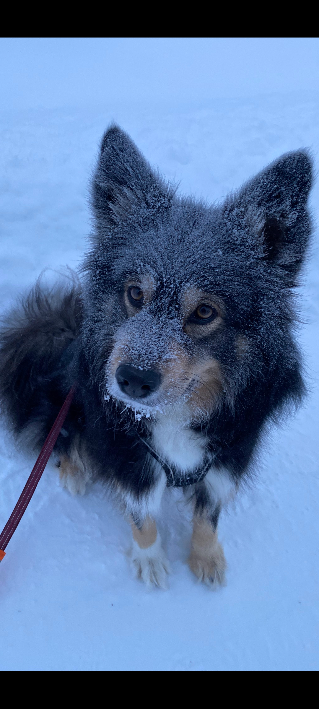 Hahah, her breed is a finnish lapphund, so we rarely use shoes for her apart when she pulls us on skiis.