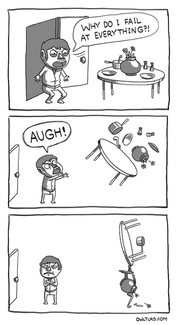 The best part is that once he finally makes it to the other side, he just casually stands up and walks away at normal speed.