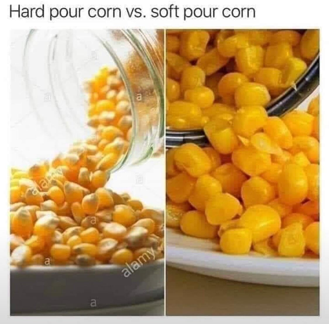 I love corn, but the hard one's I will make popcorn and the soft one's will go nice with some yellow rice and baked beans.