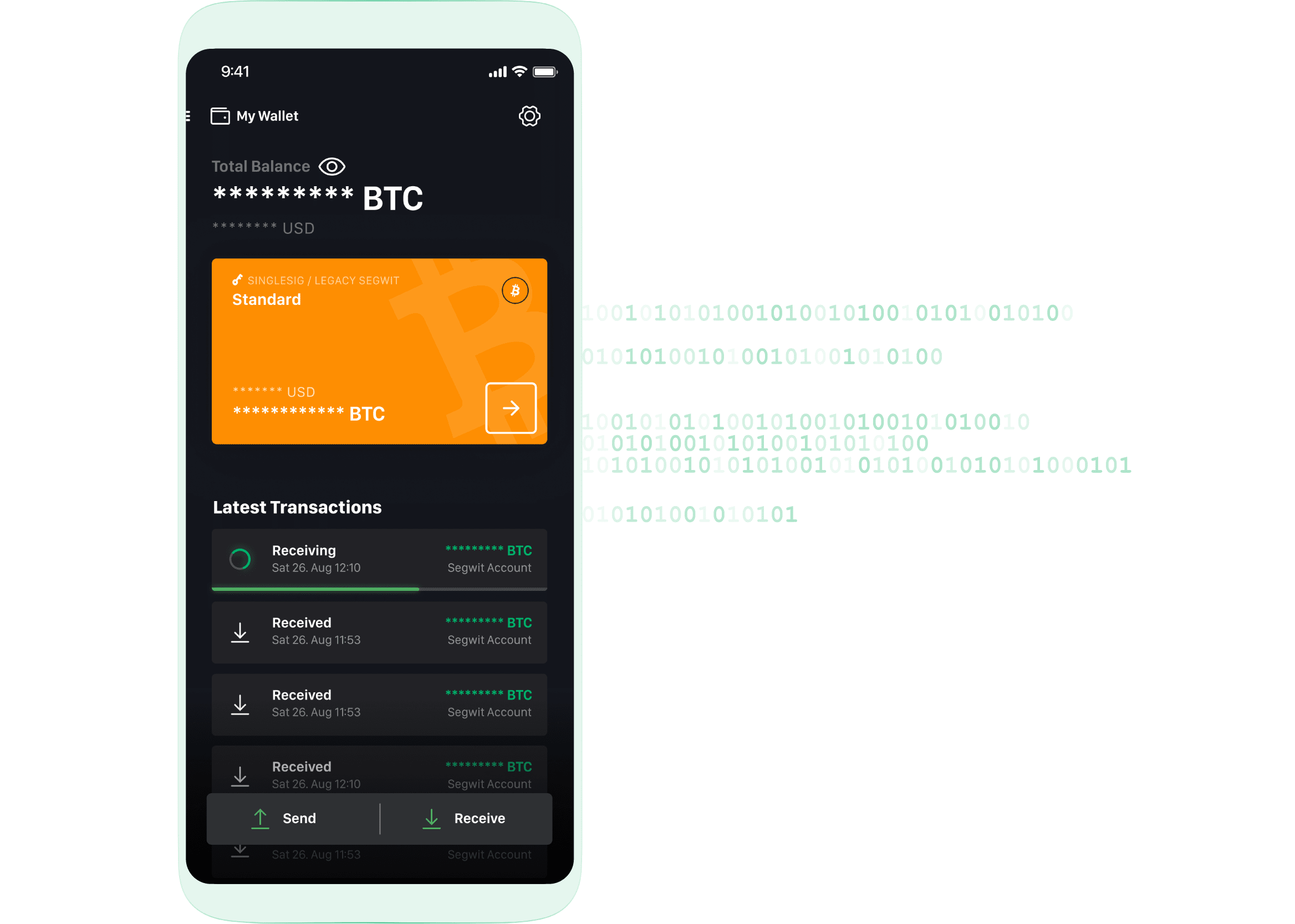 - You can change the balance display in BTC or sats.