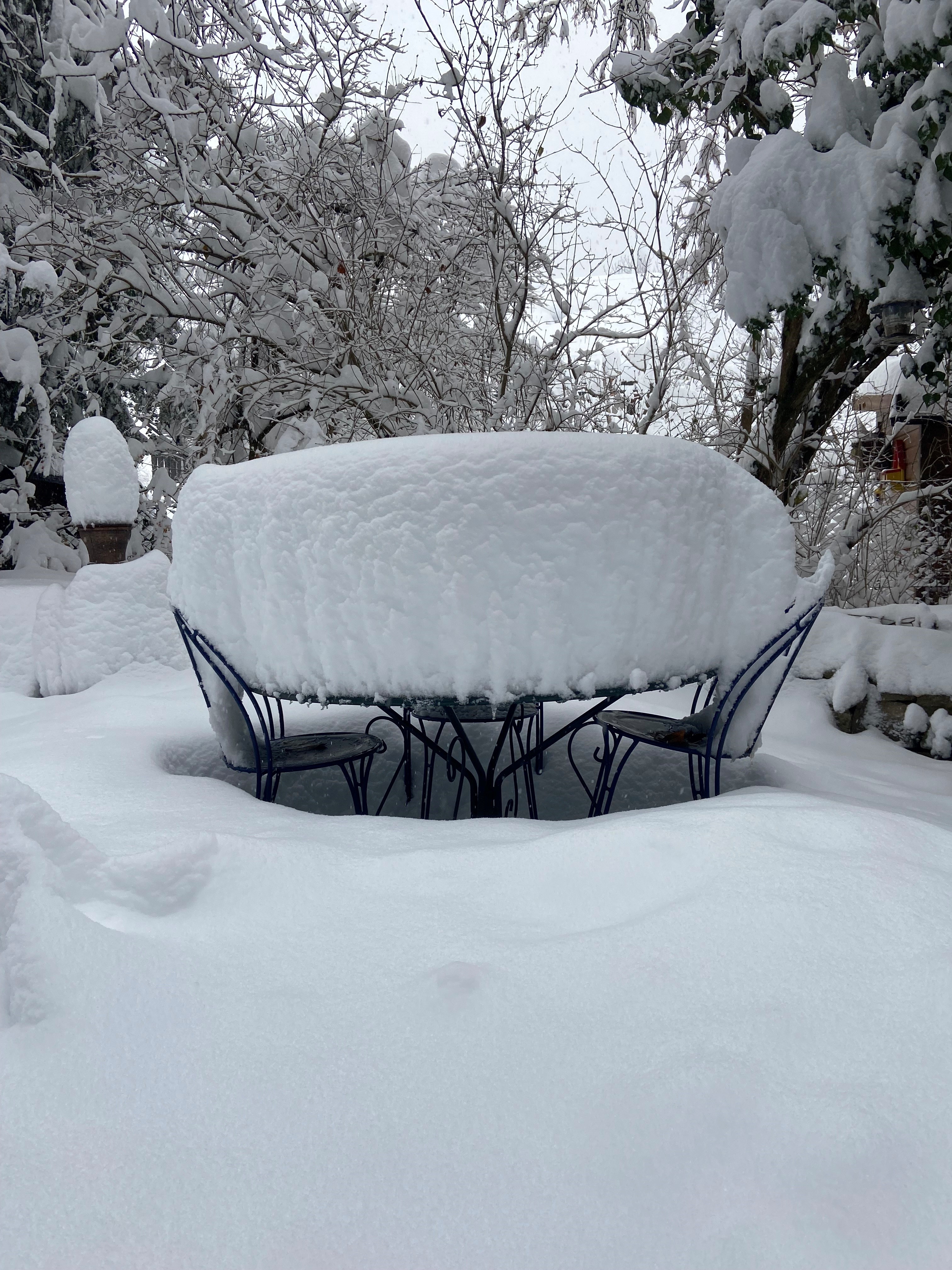 I got up and woke up my sleeping girlfriend with the snow blower haha. Are you already sinking into the snow?