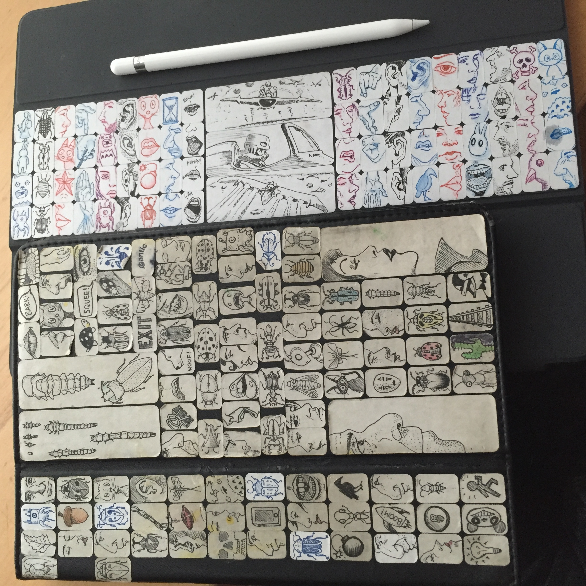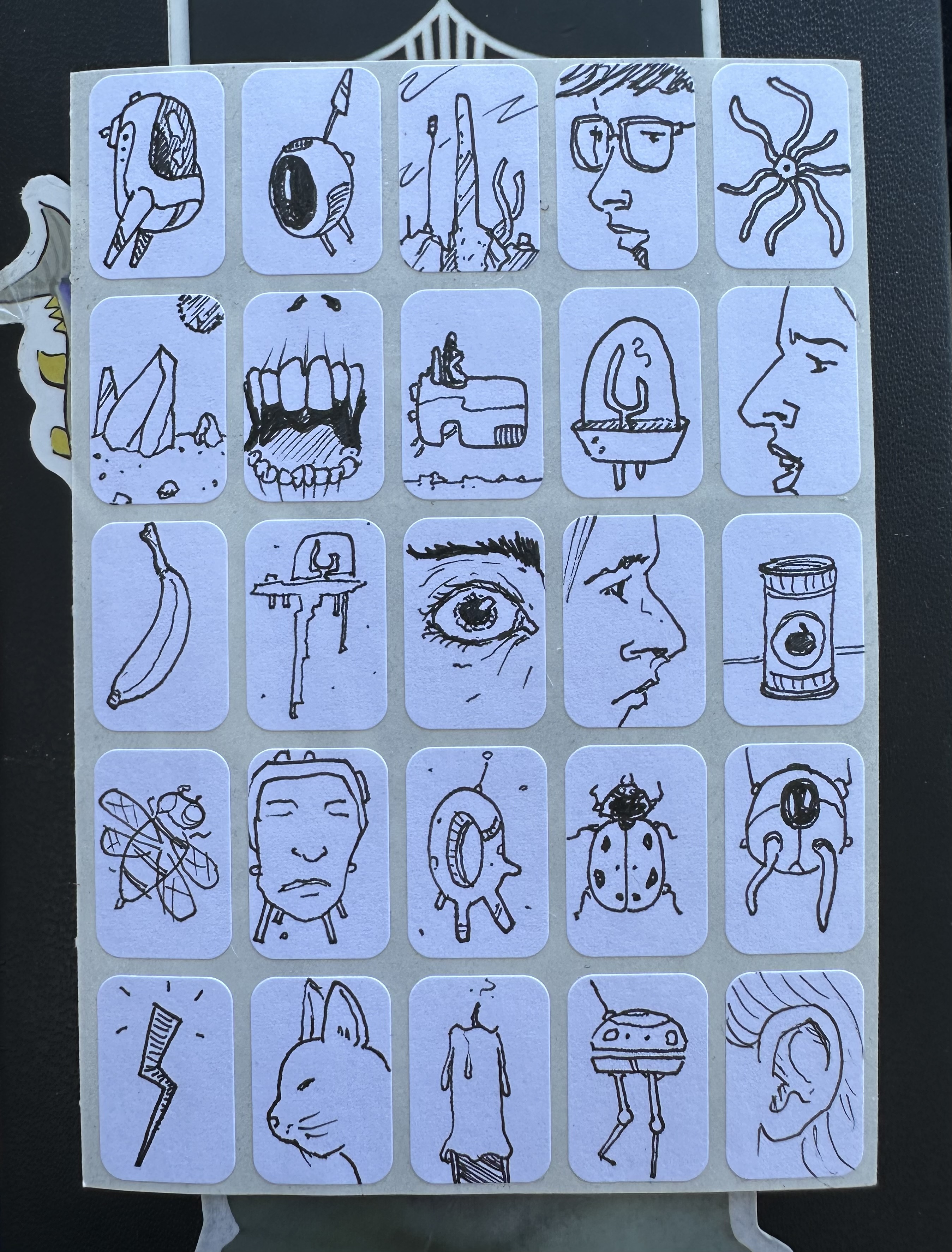 For about the last 10 years, I’ve been doodling on Avery sticker labels. I find this to be a fun meditation exercise that limits the canvas to just a tiny space, and now I’ve drawn thousands of little ephemeral pieces of art. I always have a few blank sheets on my pocket sketchbook handy so whenever I’m sitting around waiting for something, I can pull out a pen and a sticker sheet and doodle. What should I do with these?