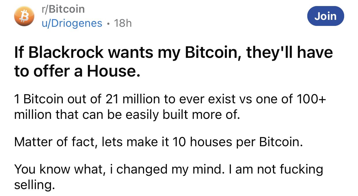 By selling your Bitcoin to BlackRock, you will lose your power. No reason to sell your Bitcoin for weak money.