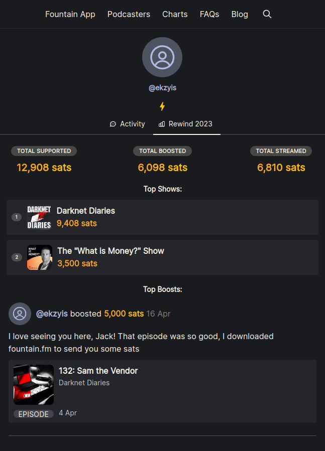 Also view your own personal stats on your Fountain profile link on web - https://fountain.fm/merryoscar/rewind