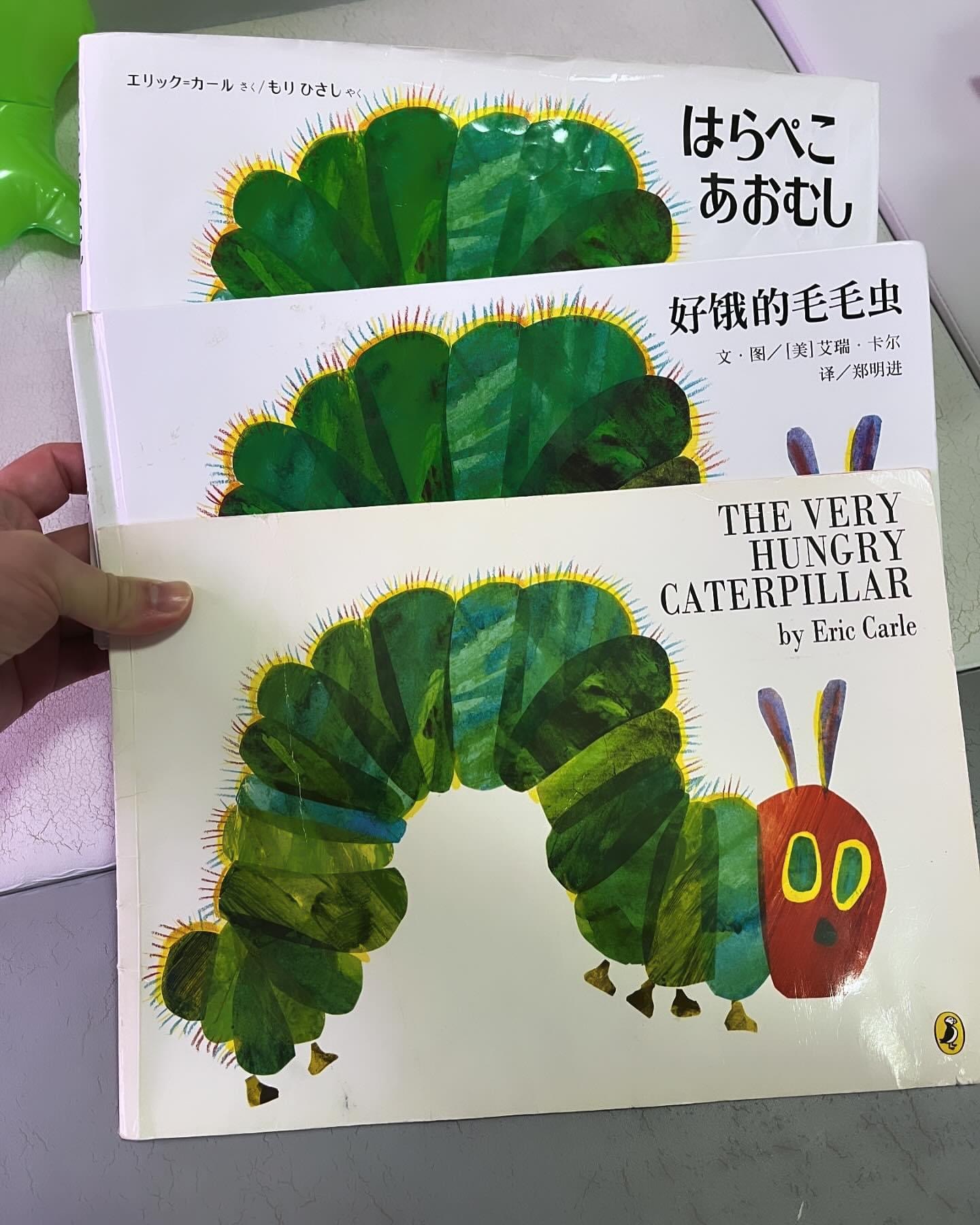 There’s plenty of downtime involved in raising my infant girl actually. She ignores me whenever I try to do something with her, but hell hath no fury like a woman scorned when I try to leave her playpen. Her screams can burst eardrums, I swear. Anyway, I thought of entertaining myself by reading “The Very Hungry Caterpillar” by Eric Carle in three languages.