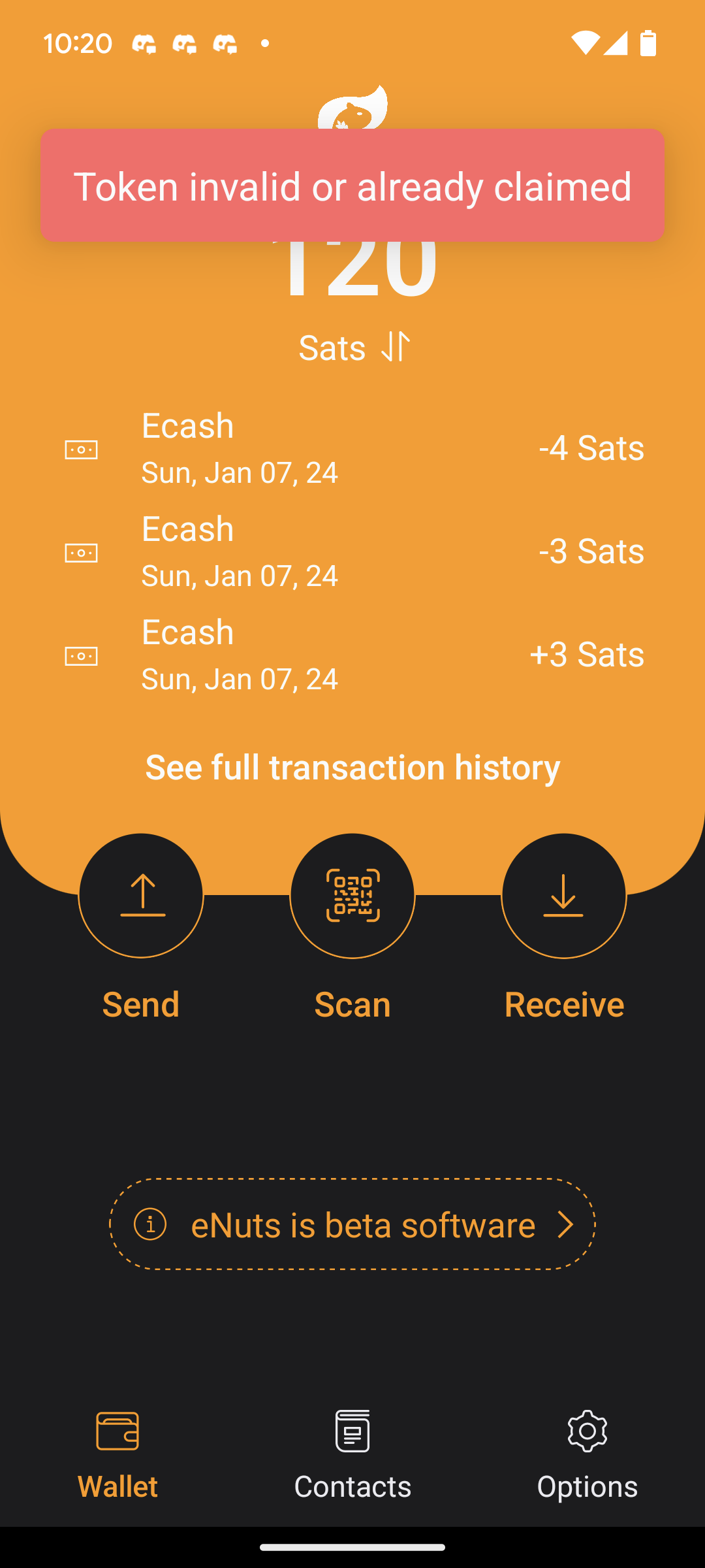 when I scan runningbitcoins token with eNuts it says it's already been redeemed - did I do mine correctly?