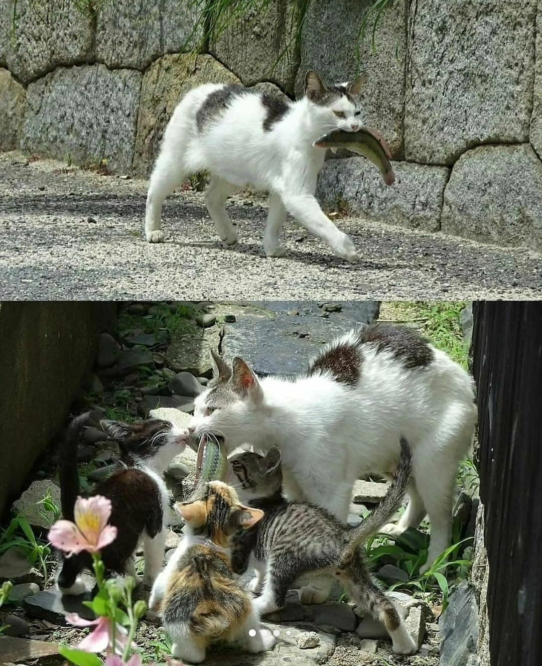 Mama Cat Amazes by Bringing Fresh Fish to Her Adorable Kittens