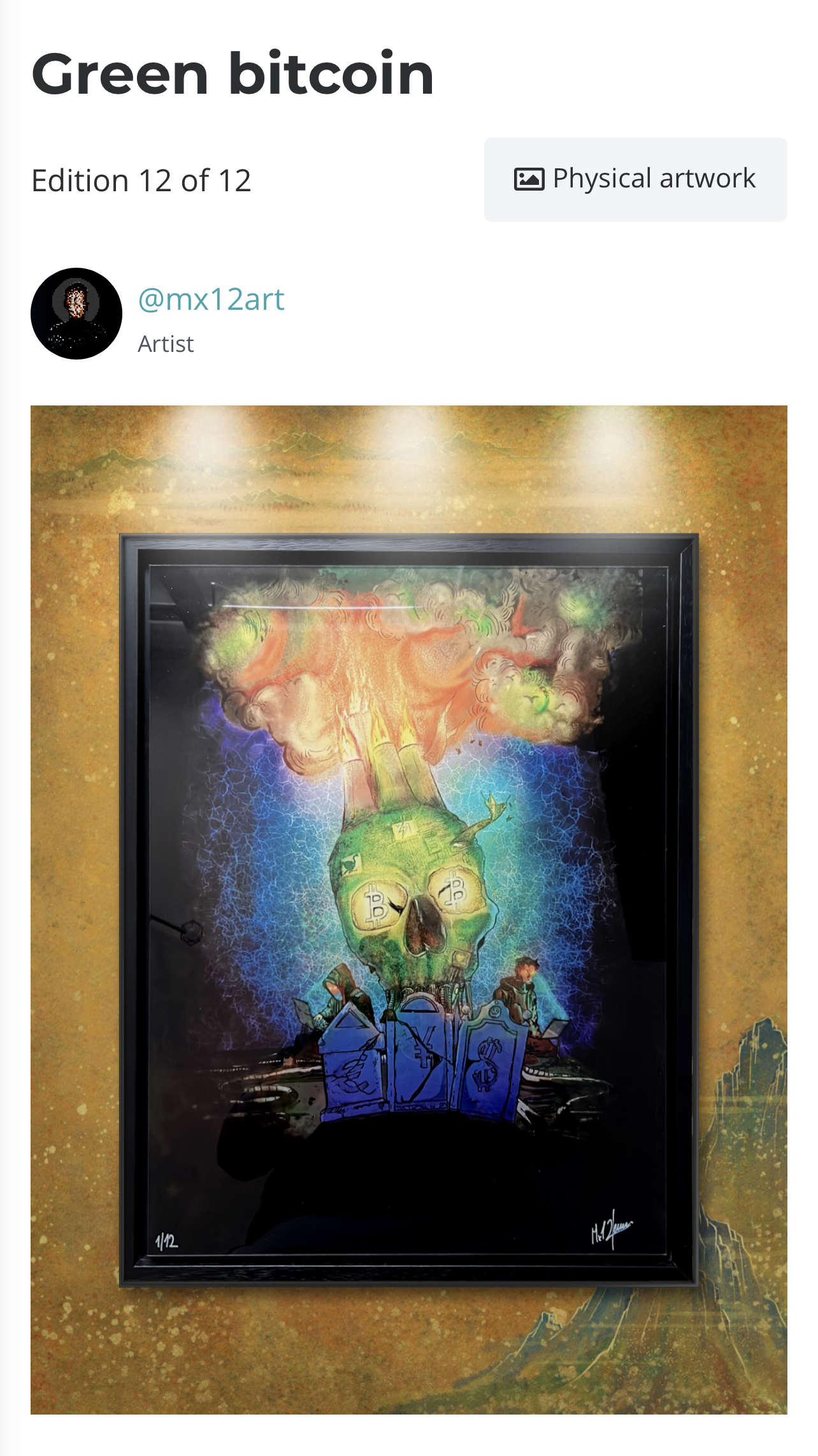 I use these platforms like tickets for art lotteries. It's a way for people to have a shot at winning one of my physical artworks – like a membership in my art club. I combine animation with my physical art. If you open your phone camera and point it at the artwork, you'll see the animation.
