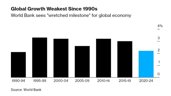 In a statement, Indermit Gill, Worldank’s chief economist, declares, "Without a major course correction, the 2020s will go down as a decade of wasted opportunity." As we brace for per-capita investment growth in developing economies averaging a mere 3.7% over 2023-2024—half the average of the past two decades—we find ourselves at a pivotal juncture. The pressing question emerges: How can nations rally to bolster investments and fortify fiscal policies as it shows that decades of keynesian policy destruction lead to nothing more than debt spirals and shrinking productivity growth. We should understand rising global unrest and wars as symptoms of the same disease.