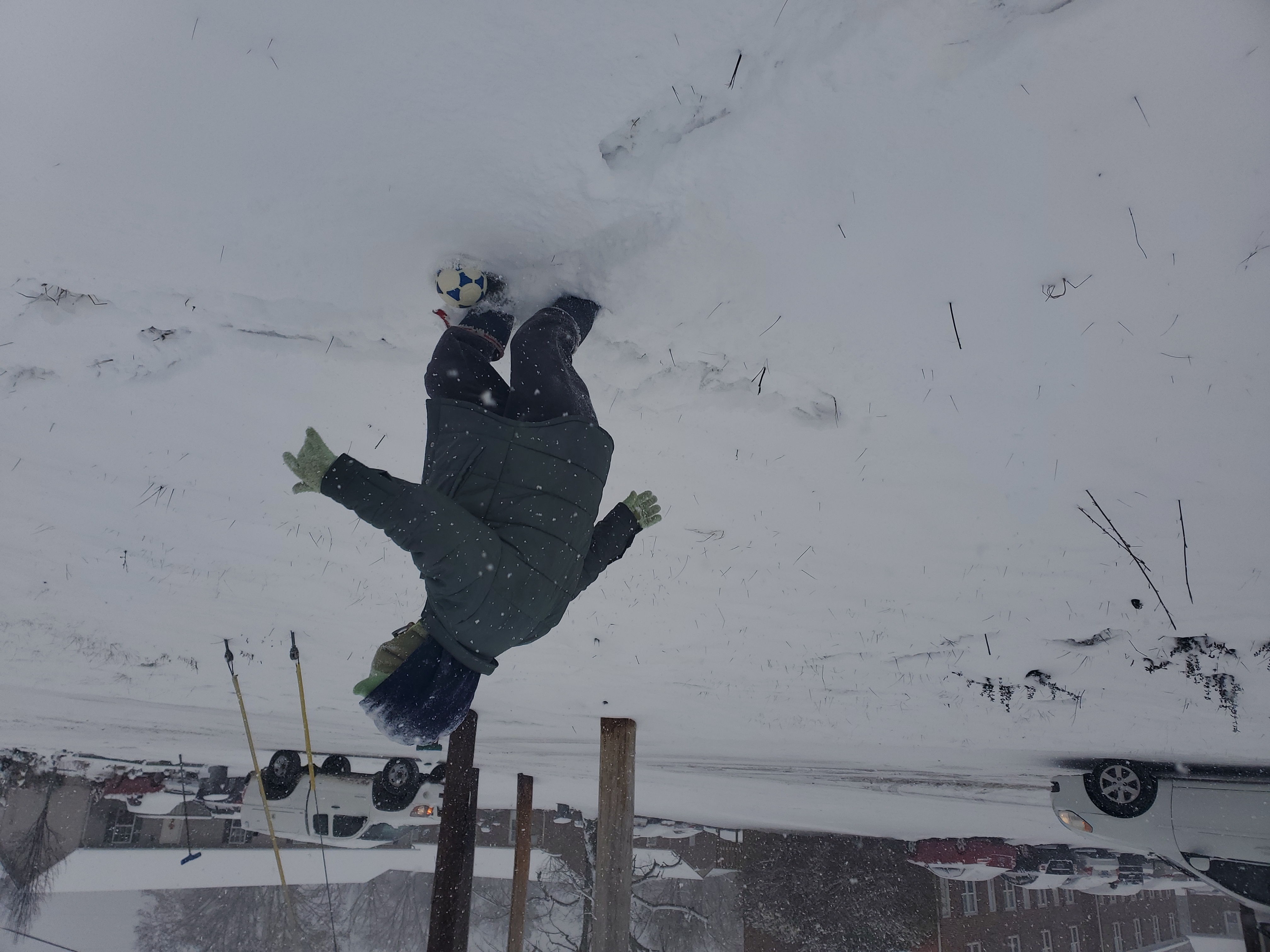 SNOW DAY! Kicking around the mini soccer ball with my boy!