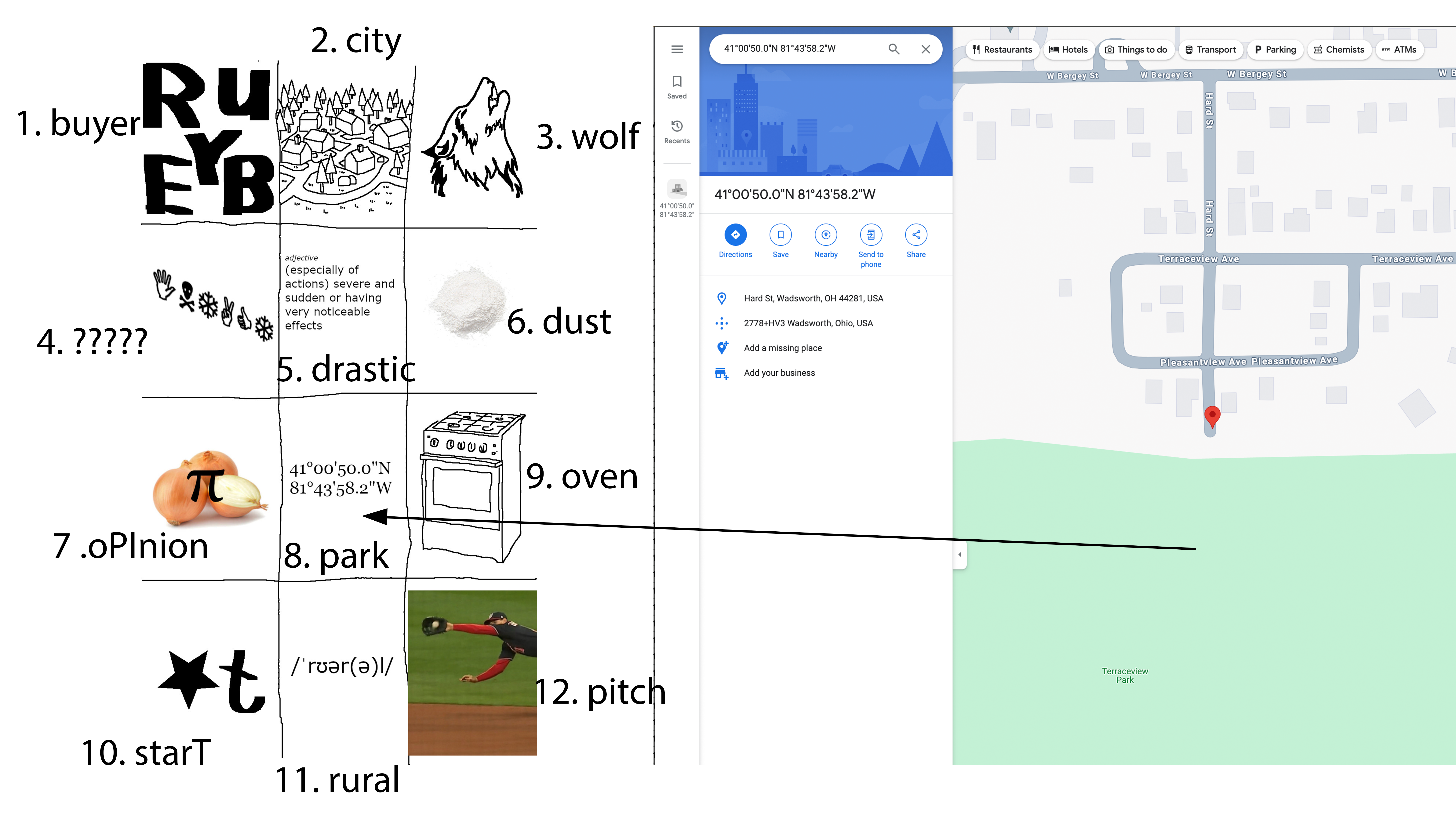 I went through each of the 2048 BIP39 words and looked to see if it matched any of the pictures.