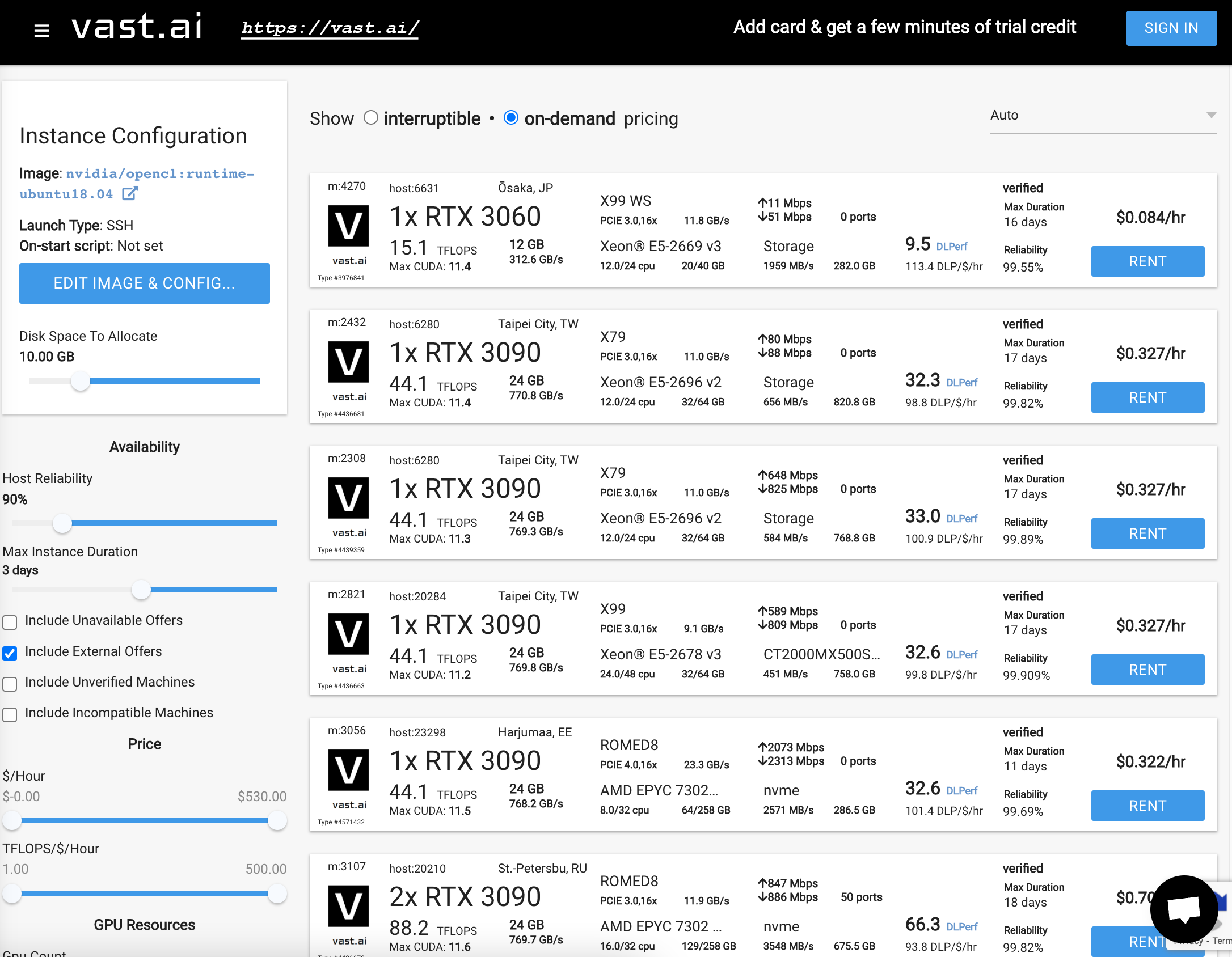 I used https://vast.ai/i as seemed to be the cheapest option.