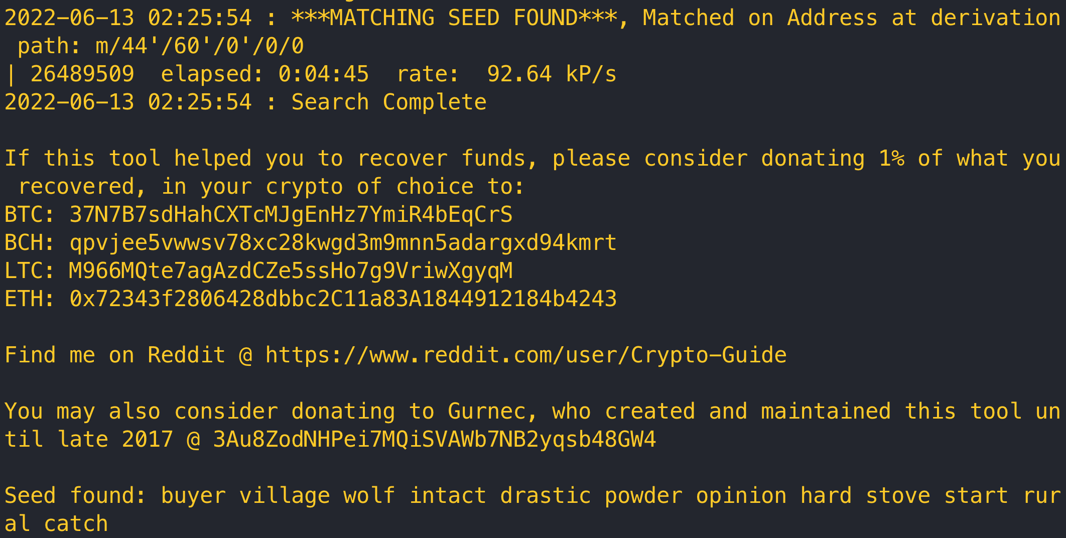 The 1st pic in the thread was taken right after I found the seed, when I posted by "victory" on twitter, but the screenshots of the commands I re-ran after when I was documenting the process.
